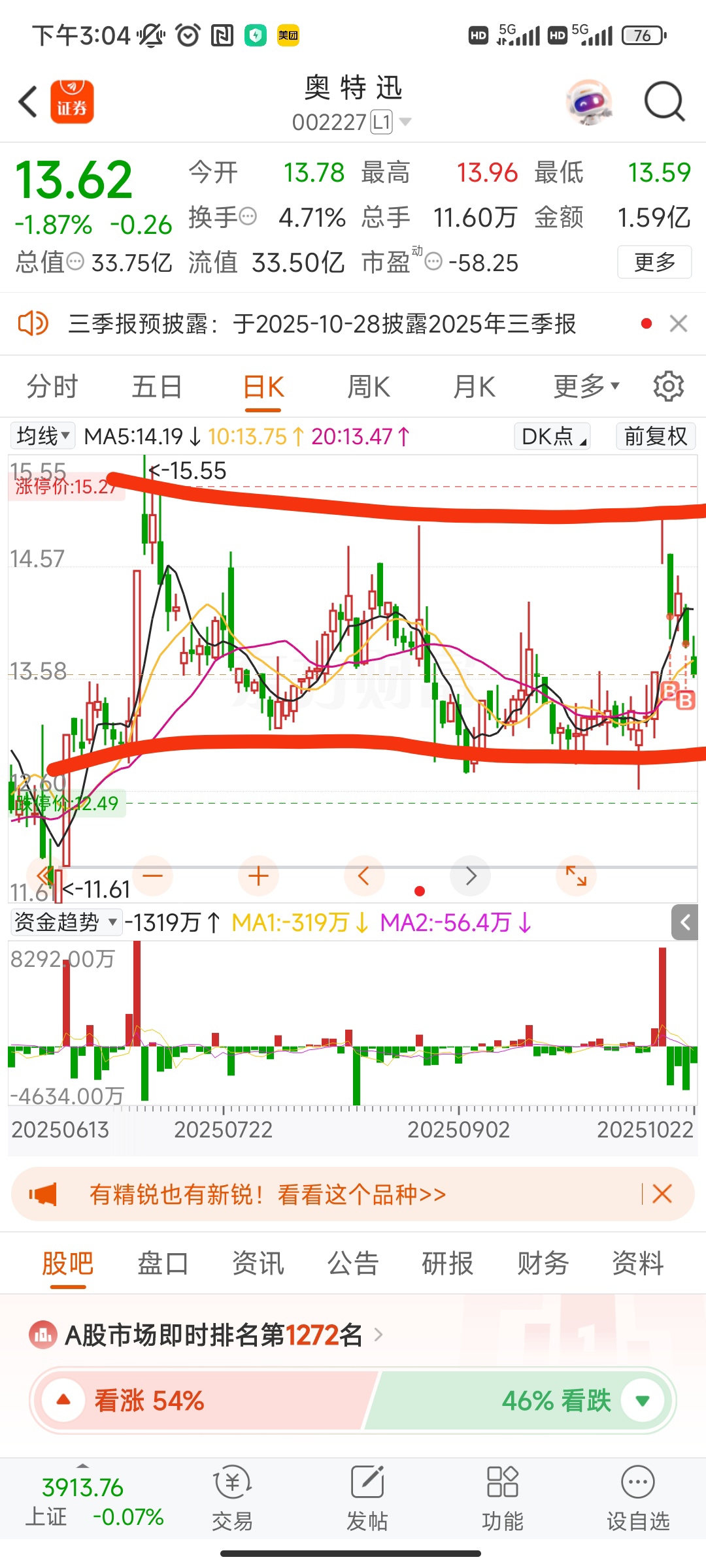 $奥 特 迅(SZ002227)$ 这个还得跌,到11月后才反弹