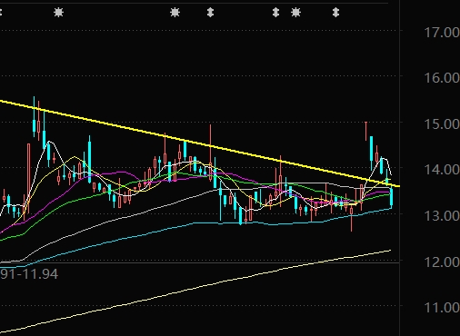 此股一直在明显的下跌趋势中,所以只要超过下跌趋势线,就会跌回重新回到通道中。睁眼