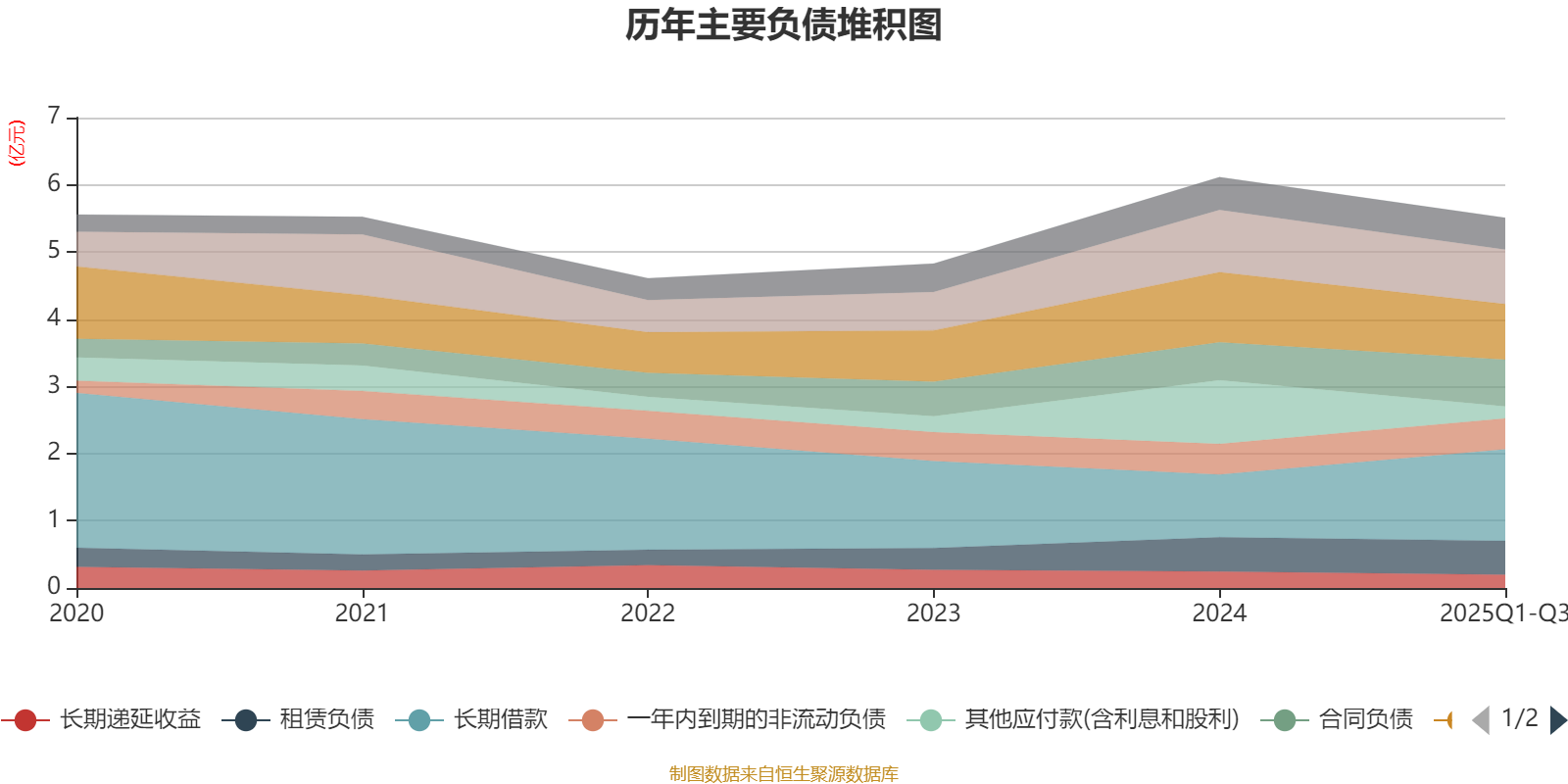 负债重大变化方面,截至2025年三季度末,公司其他应付款(含利息和股利)较上年末减少81.35%,占公司总资产比重下降4.69个百分点;长期借款较上年末增加46.04%,占公司总资产比重上升3.29个百分点;合同负债较上年末增加23.53%,占公司总资产比重上升1.14个百分点;应付票据及应付账款较上年末减少20.82%,占公司总资产比重下降0.96个百分点。