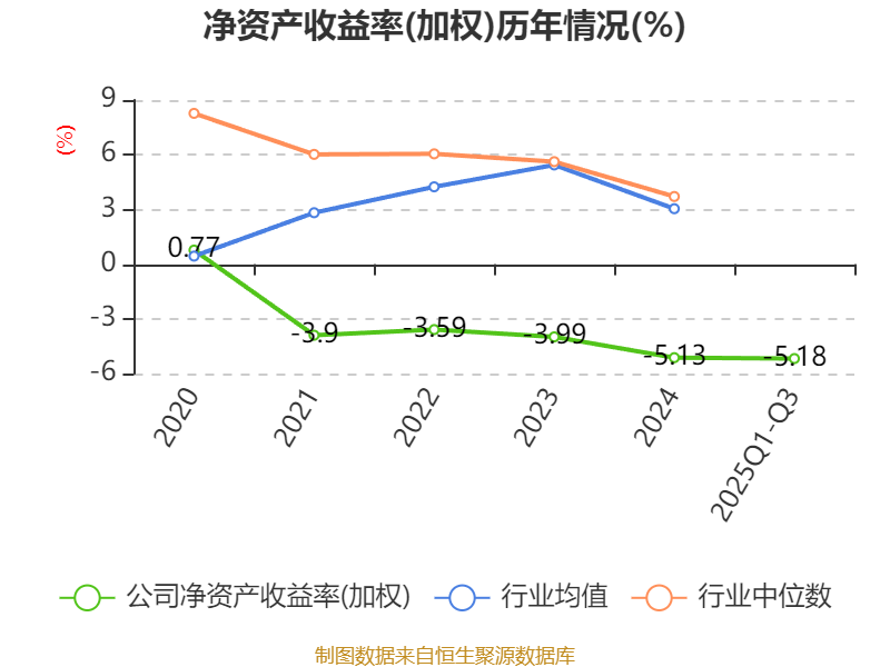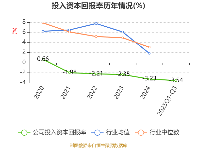 盈利能力方面, 2025年前三季度公司加权平均净资产收益率为-5.18%,同比下降2.94个百分点。公司2025年前三季度投入资本回报率为-3.54%,较上年同期下降2.8个百分点。