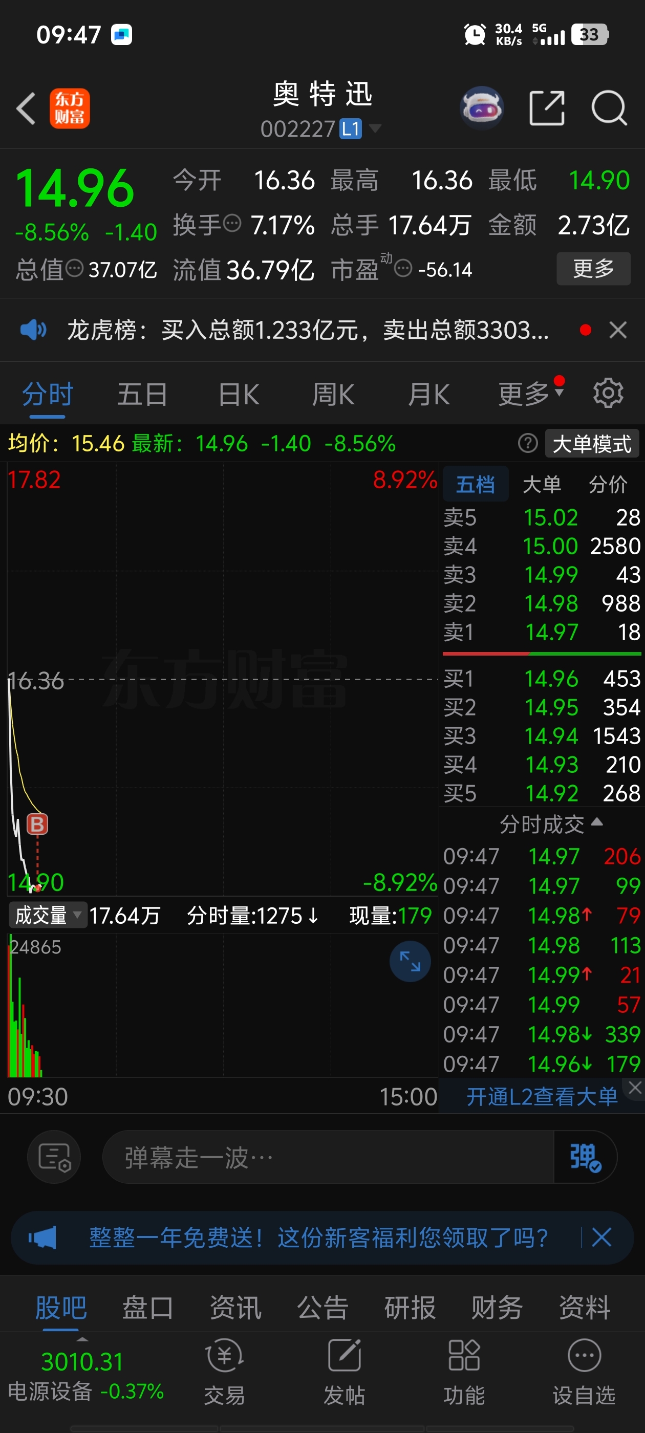 $奥 特 迅(SZ002227)$ 买点试水