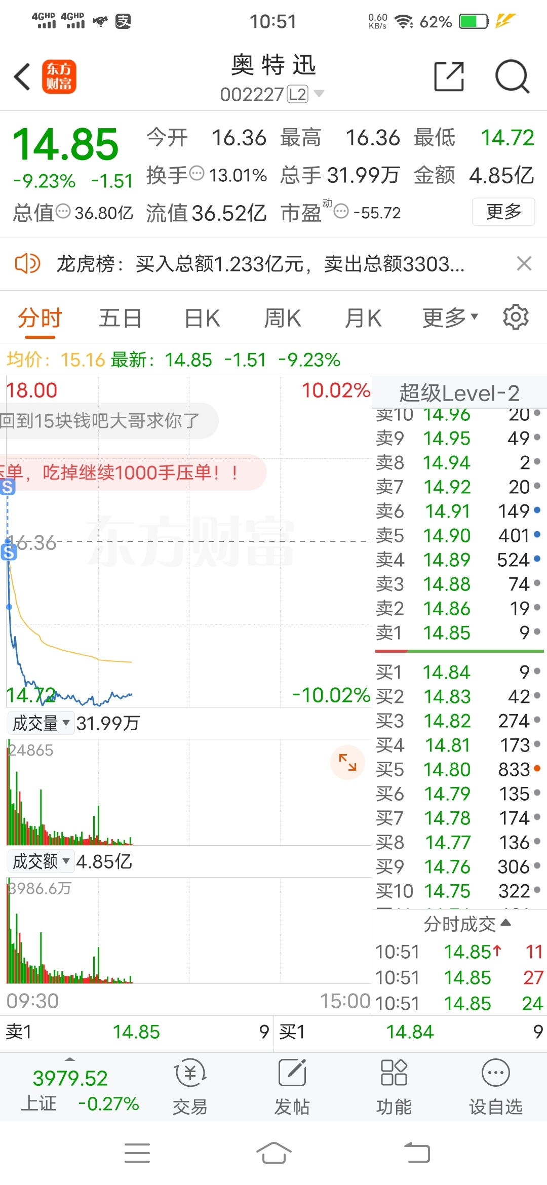 $奥 特 迅(SZ002227)$ 兄弟们我先跑了