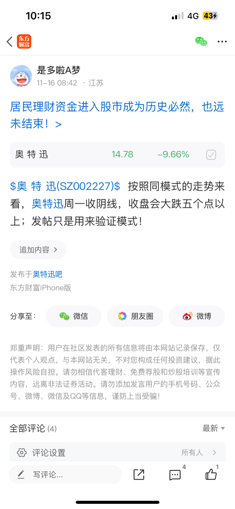 温馨提示: 1.根据《证券法》规定,禁止编造、传播虚假信息或者误导性信息,扰乱证券市场;2.用户在本社区发表的所有资料、言论等仅代表个人观点,与本网站立场无关,不对您构成任何投资建议。用户应基于自己的独立判断,自行决定证券投资并承担相应风险。《东方财富社区管理规定》