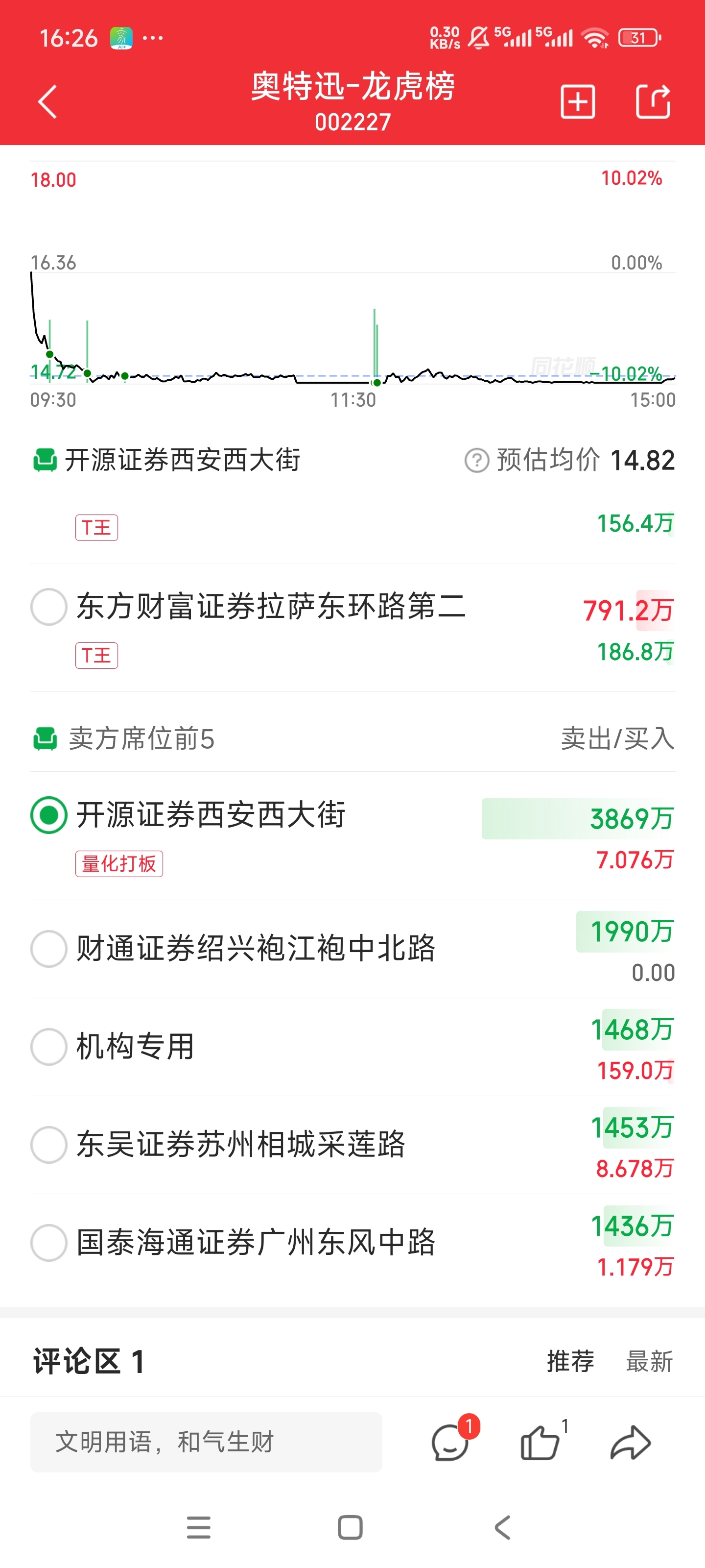 $奥 特 迅(SZ002227)$ 你这是割肉了吗