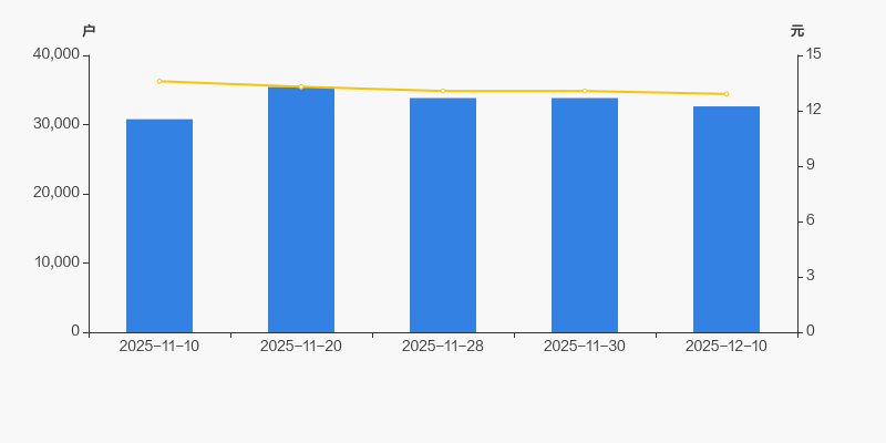 2025年11月10日至今,公司股东户数有所增长,区间涨幅为6.05%。2025年11月10日至2025年12月10日区间股价下降5.07%。