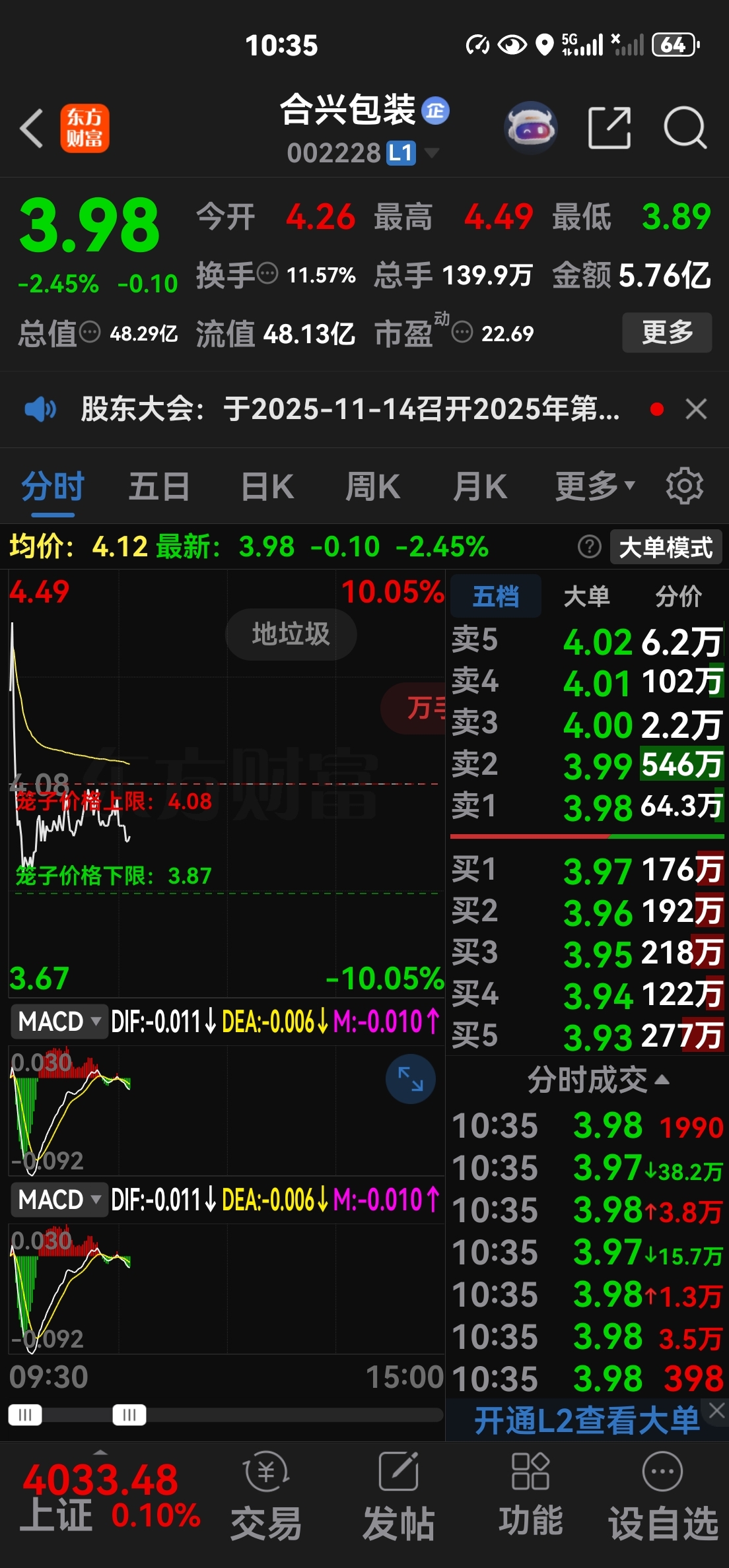 $合兴包装(SZ002228)$ 【牢记】372买,千万别追高