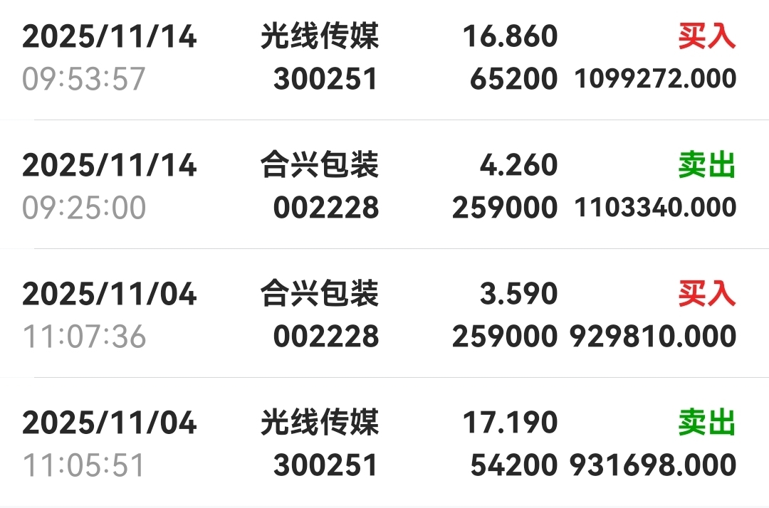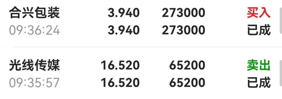 $合兴包装(SZ002228)$ $光线传媒(SZ300251)$ 短线又切回合兴包装了!先炒完小盘再中盘,今天军工很牛,可惜周五没有买天和防务,又被光线传媒坑了一把。