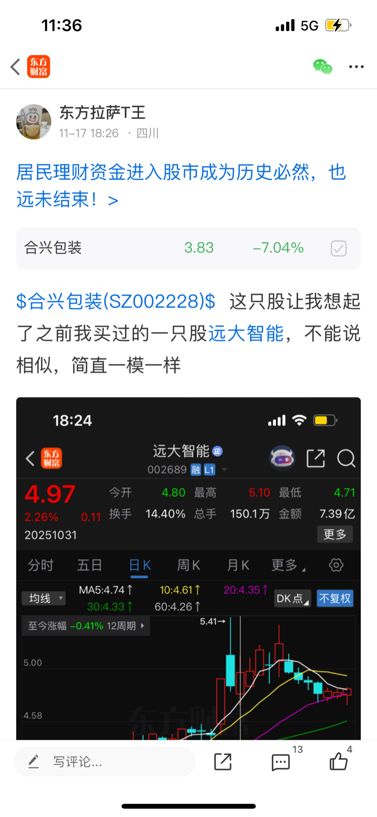 $合兴包装(SZ002228)$ 各位道友非常抱歉,昨天复盘说这票像远大智能,结果他今天直接一耳光甩我脸上,确实他根本就不像远大智能,这他喵的给远大提鞋都不配