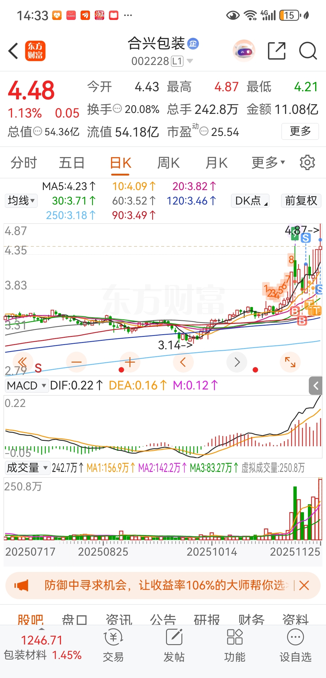 $合兴包装(SZ002228)$ 谢谢朱莉我赚了25个点。