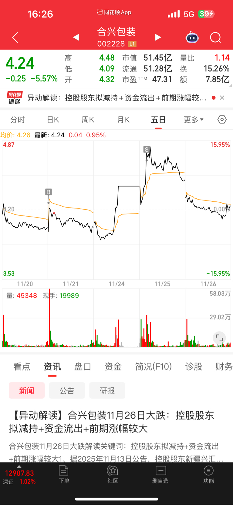 $合兴包装(SZ002228)$ 回来看看,哪天再下手