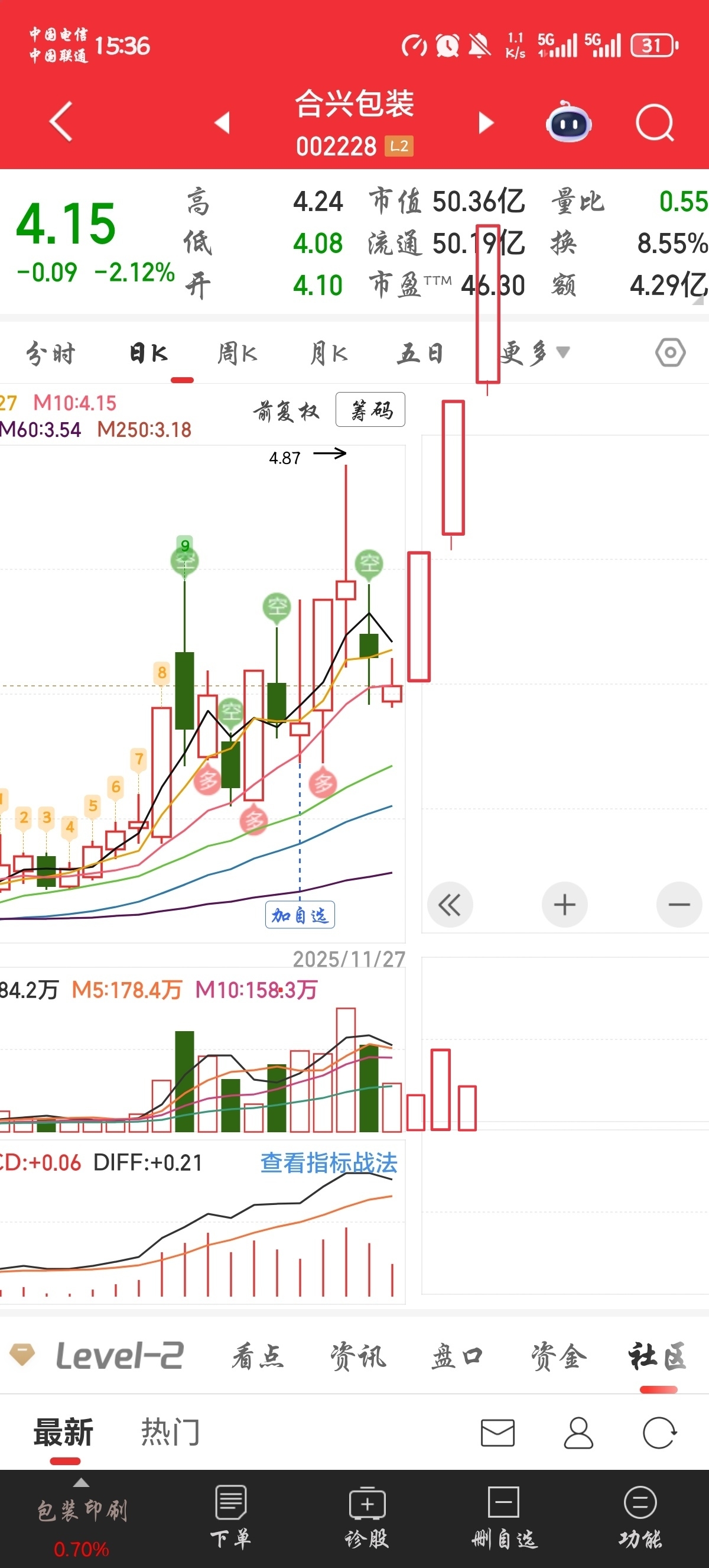 $合兴包装(SZ002228)$ 大家好,我是01战神,应该都认识我吧?负责本次合兴包装的操盘手之一,经过三天的盘面强力洗盘,成功将不坚定的散户洗了出去,明天开始连板加速,想及时悬崖勒马的现在就挂隔夜涨停委托单!!!后续走势如下图