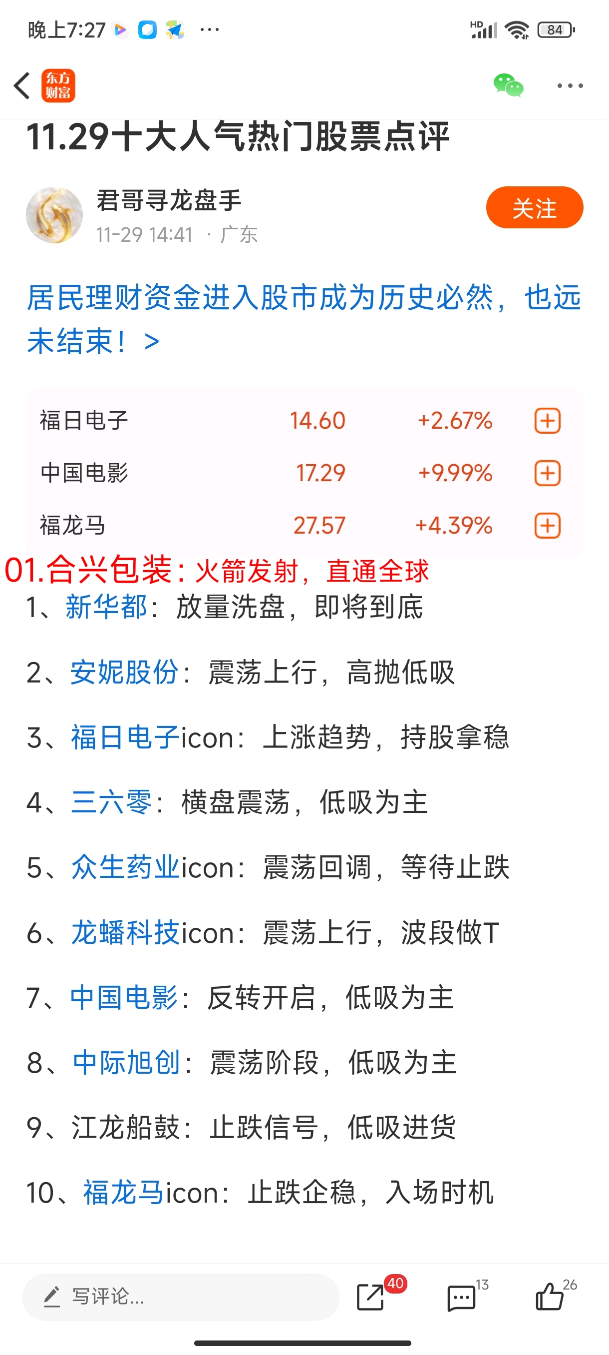 温馨提示: 1.根据《证券法》规定,禁止编造、传播虚假信息或者误导性信息,扰乱证券市场;2.用户在本社区发表的所有资料、言论等仅代表个人观点,与本网站立场无关,不对您构成任何投资建议。用户应基于自己的独立判断,自行决定证券投资并承担相应风险。《东方财富社区管理规定》