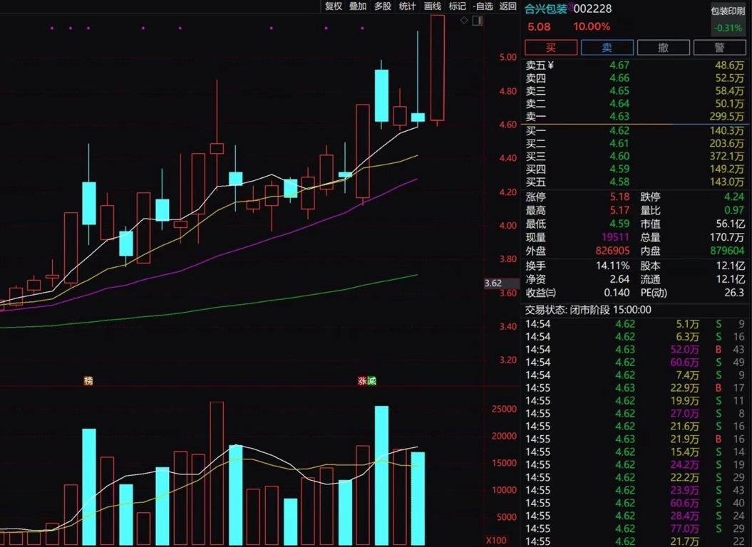 盘后突发利好!告诉你们一个秘密:如果合兴包装明天反包涨停,就是仙人指路形态,砸锅