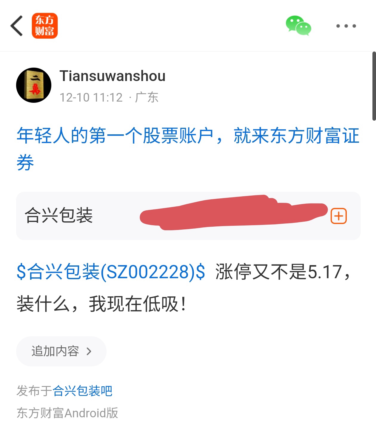 温馨提示: 1.根据《证券法》规定,禁止编造、传播虚假信息或者误导性信息,扰乱证券市场;2.用户在本社区发表的所有资料、言论等仅代表个人观点,与本网站立场无关,不对您构成任何投资建议。用户应基于自己的独立判断,自行决定证券投资并承担相应风险。《东方财富社区管理规定》