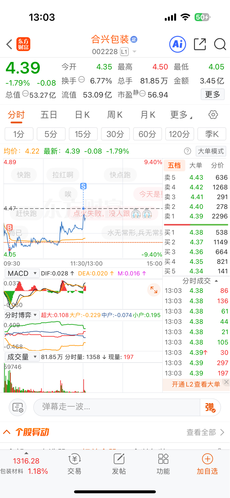 $合兴包装(SZ002228)$ 今天就这了,涨跌随意