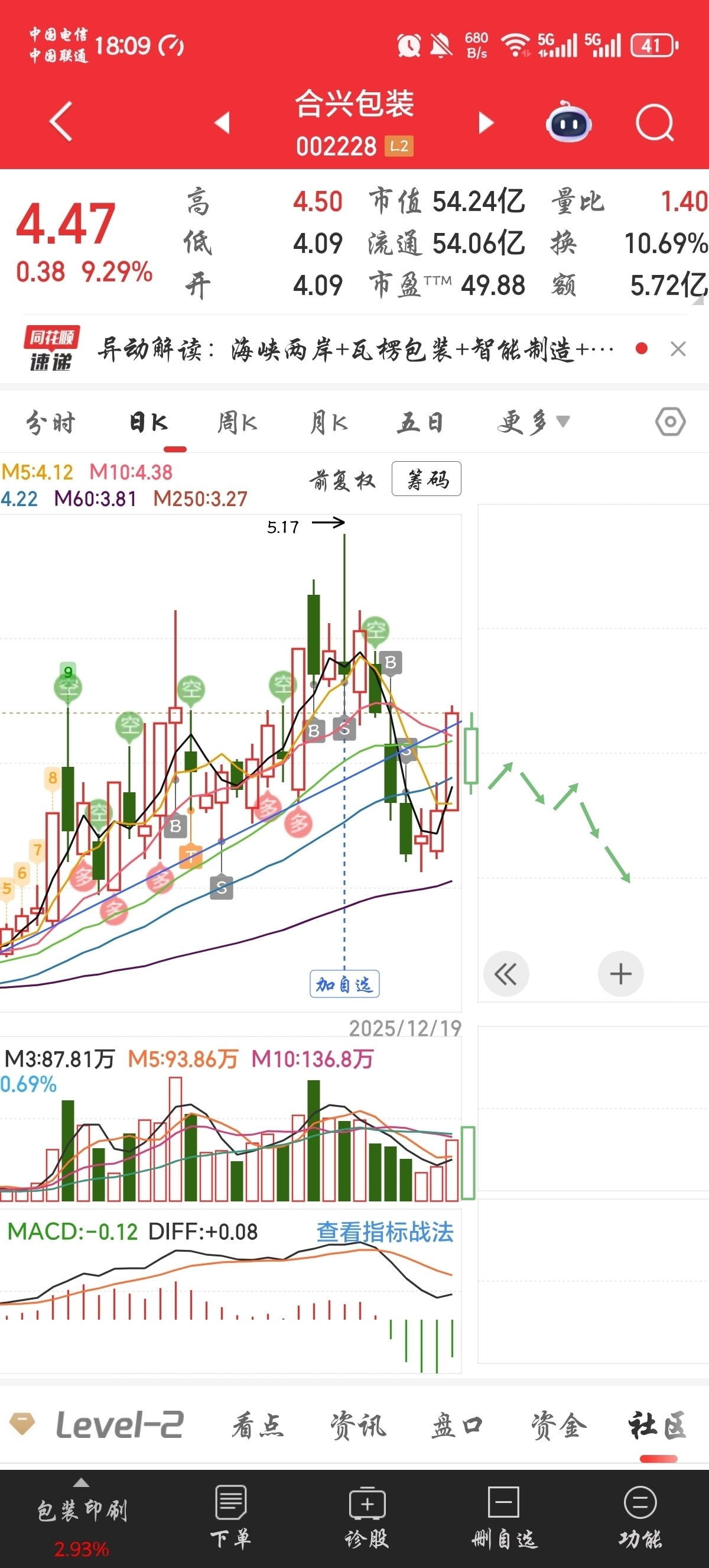 $合兴包装(SZ002228)$ 不落袋为安永远只是账面利润盘中富贵,这种杂毛后排一个板都站不稳哆哆嗦嗦,还有人幻想yy着连板跨年妖股?我看你们是忘了两天跌了20多个点的痛苦了?你们这些个记吃不记打好了伤疤忘了疼的玩意儿,周一以及后续走势如下图: