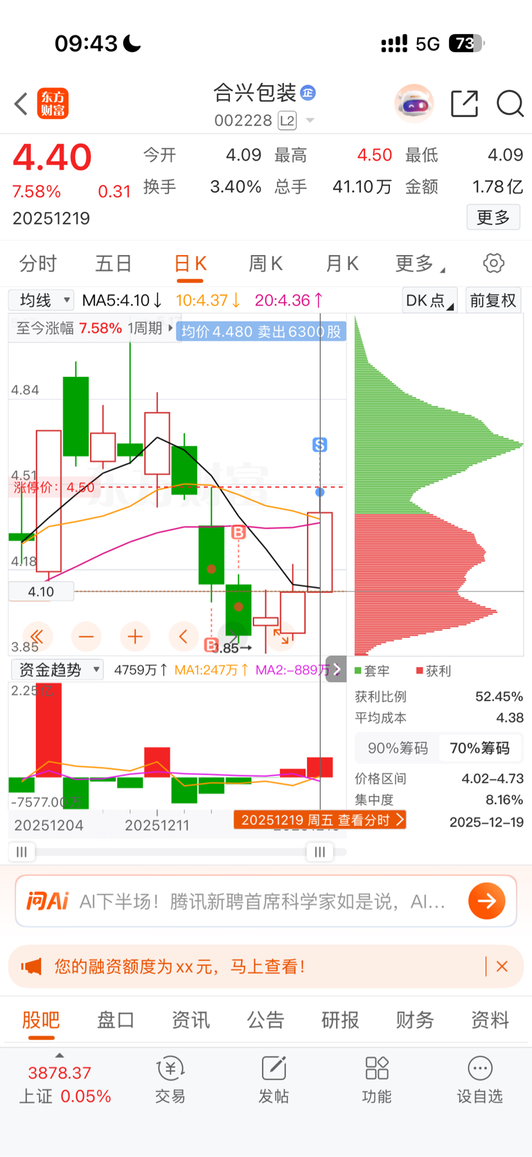 $合兴包装(SZ002228)$ @零一战神 原来是你个个杂毛踏空了啊 空仓啊 两边到处挨打 会卖才是本事啊 天天就知道狗叫