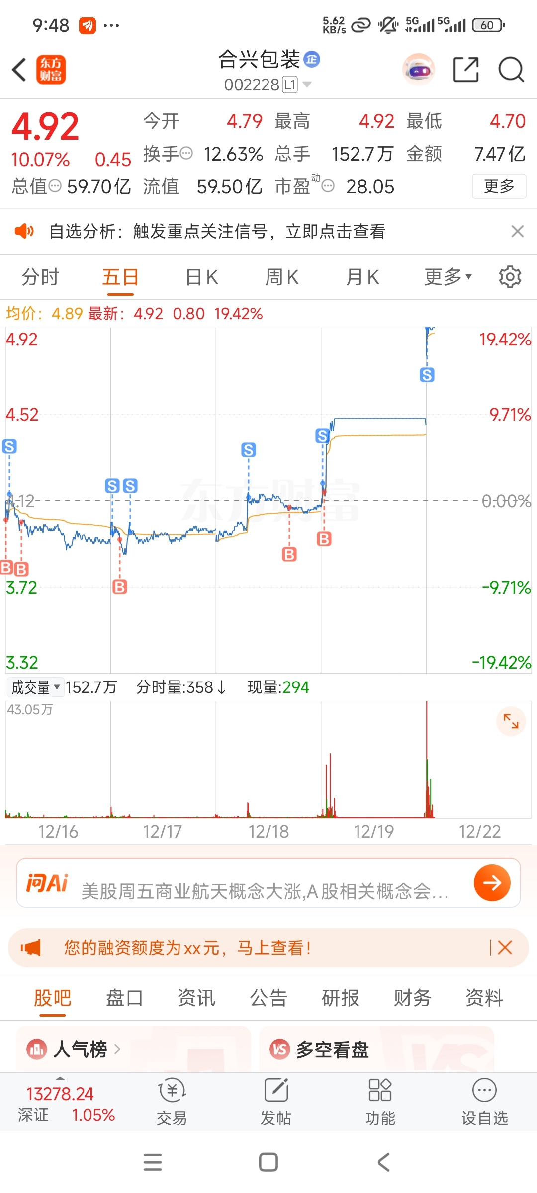 $合兴包装(SZ002228)$ 卖半仓做T的,结果买价挂低了没做成,感谢主力拉台,恭喜发财。