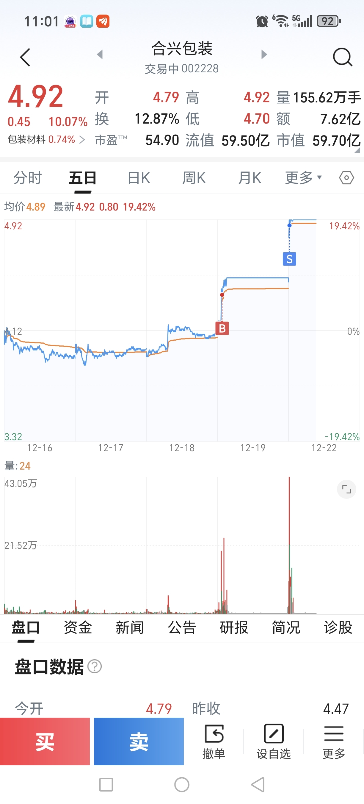 $合兴包装(SZ002228)$ 合兴是个好股,今天板上卖了,想着T一下,结果接不回来了,还好进了国风新材,以后有机会再把你接回来