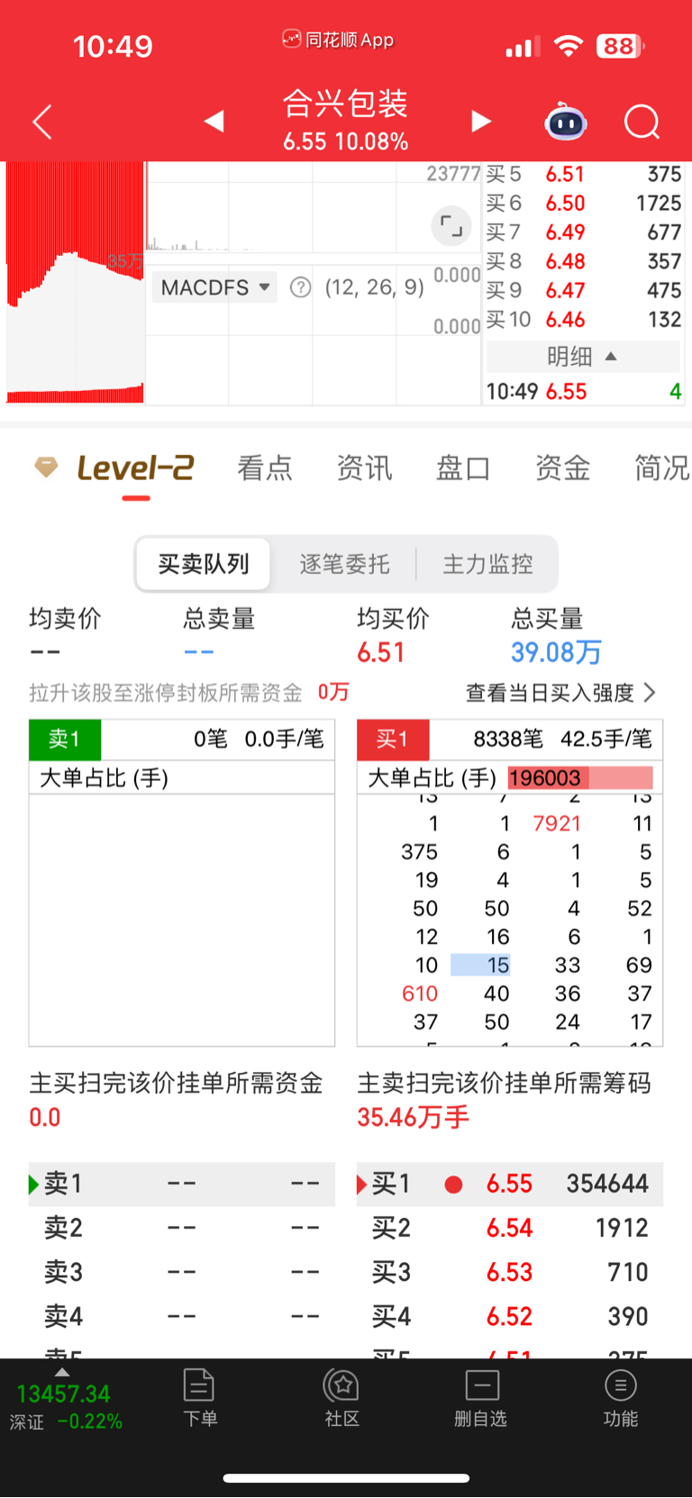 $合兴包装(SZ002228)$ 8:37挂的15手,今天能成交吗?封单成交从333到291了