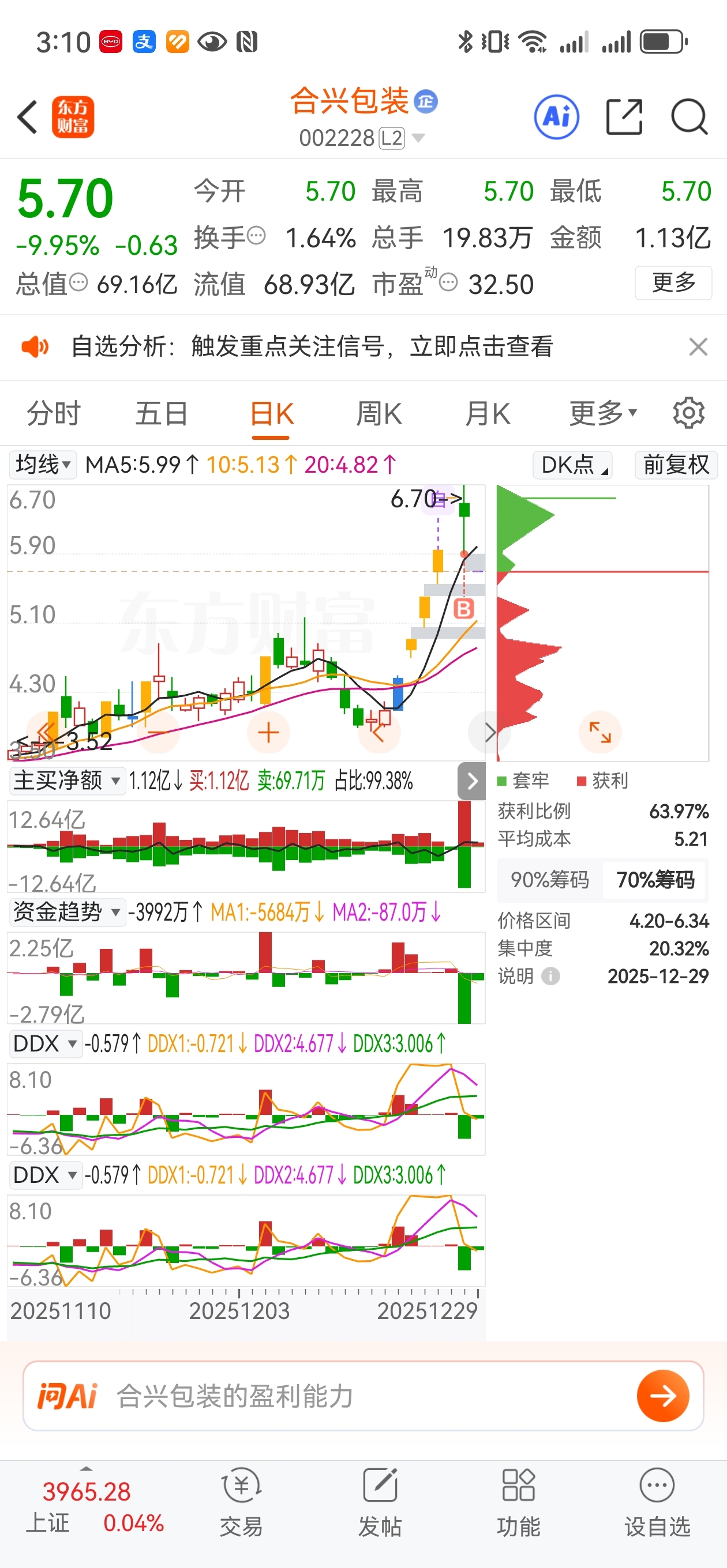 $合兴包装(SZ002228)$ 怎么竞价最后一分钟压单又上了,这是什么操作,本以为可以跑的