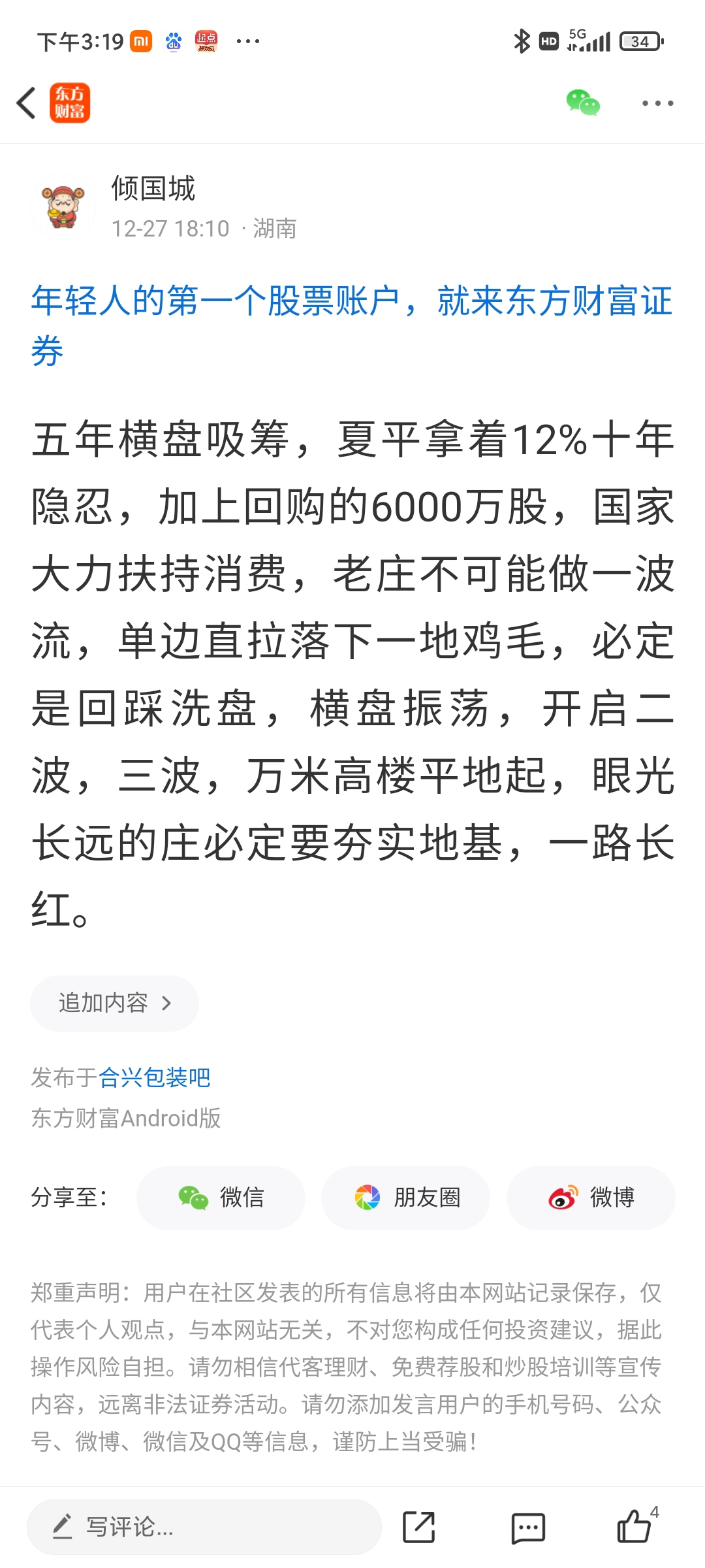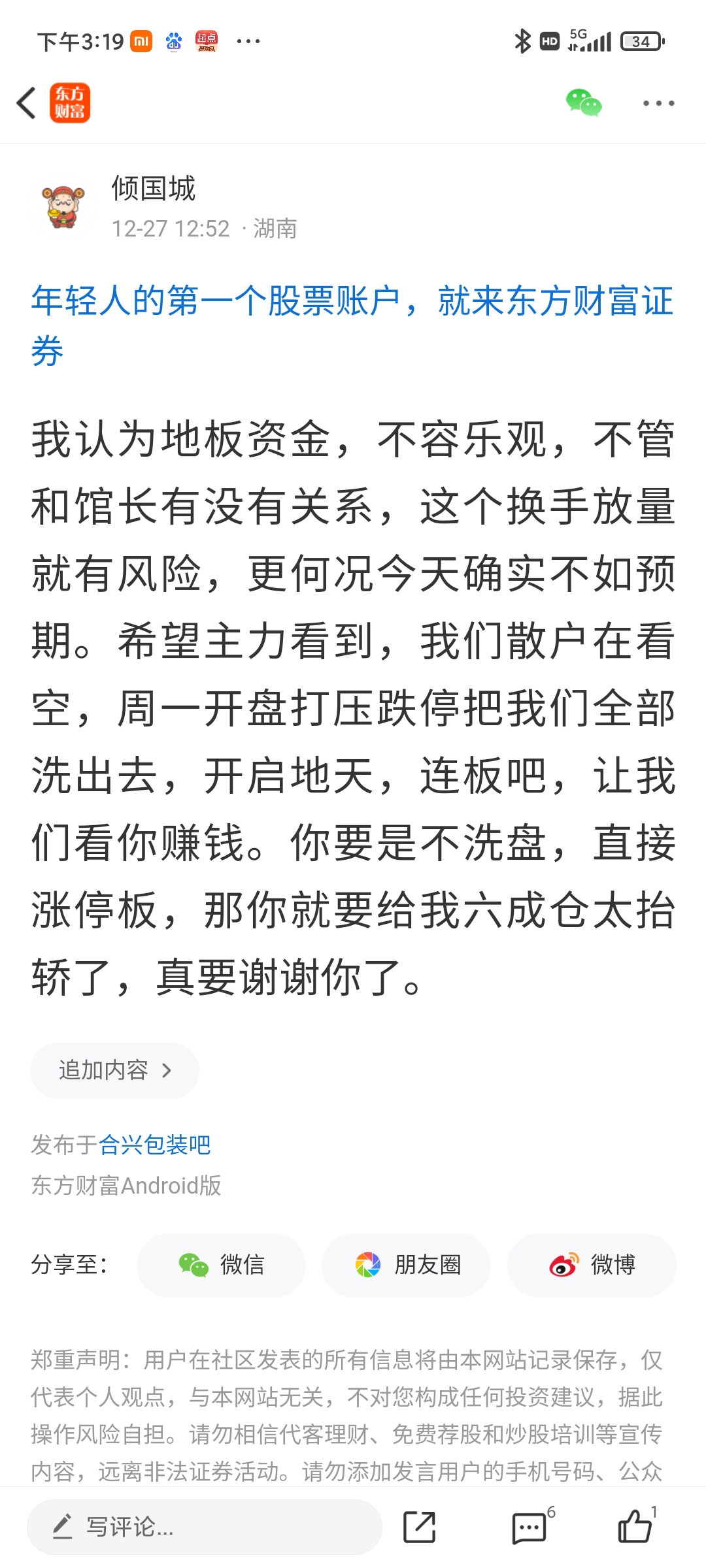 温馨提示: 1.根据《证券法》规定,禁止编造、传播虚假信息或者误导性信息,扰乱证券市场;2.用户在本社区发表的所有资料、言论等仅代表个人观点,与本网站立场无关,不对您构成任何投资建议。用户应基于自己的独立判断,自行决定证券投资并承担相应风险。《东方财富社区管理规定》