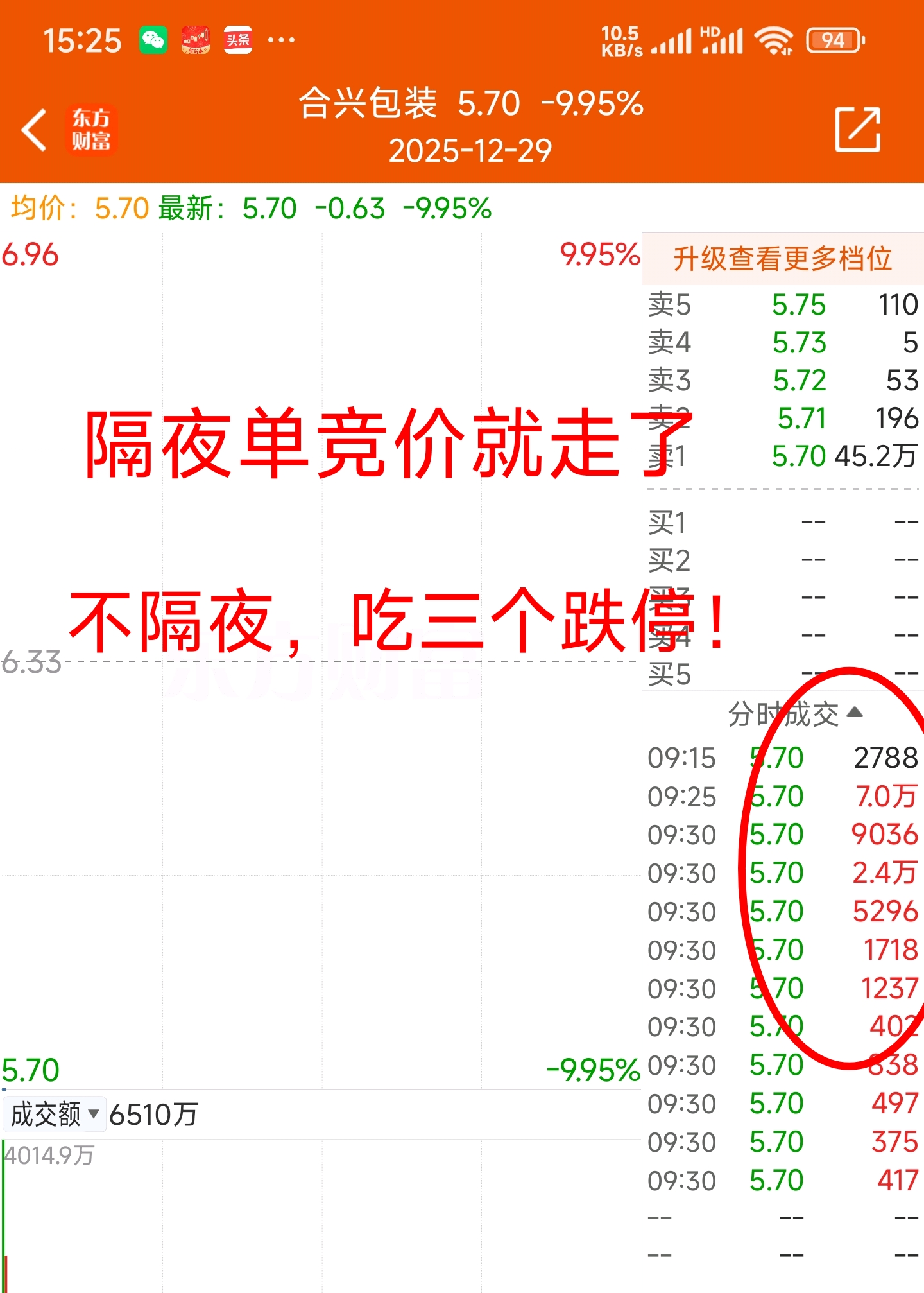 假如提前挂隔夜单,绝对可以第一个跌停走(合兴包装就是)