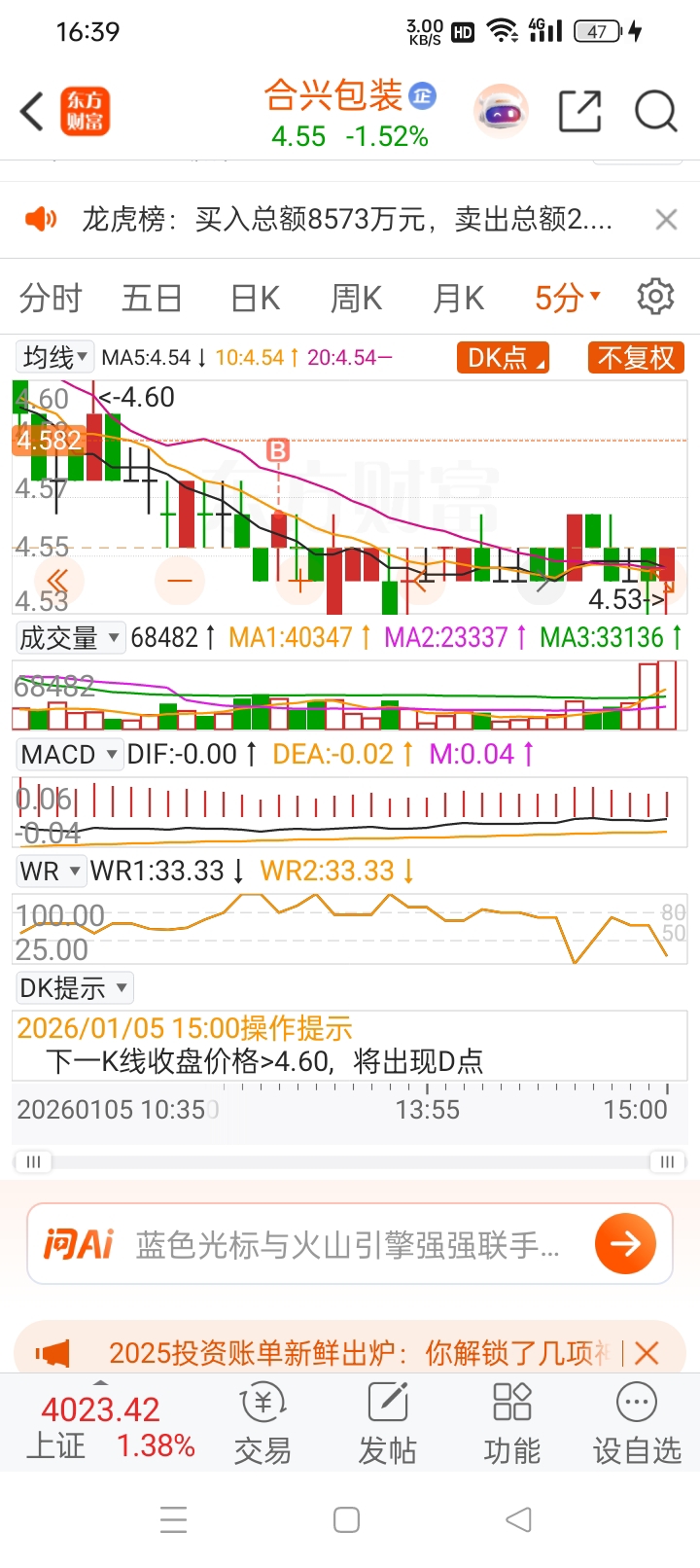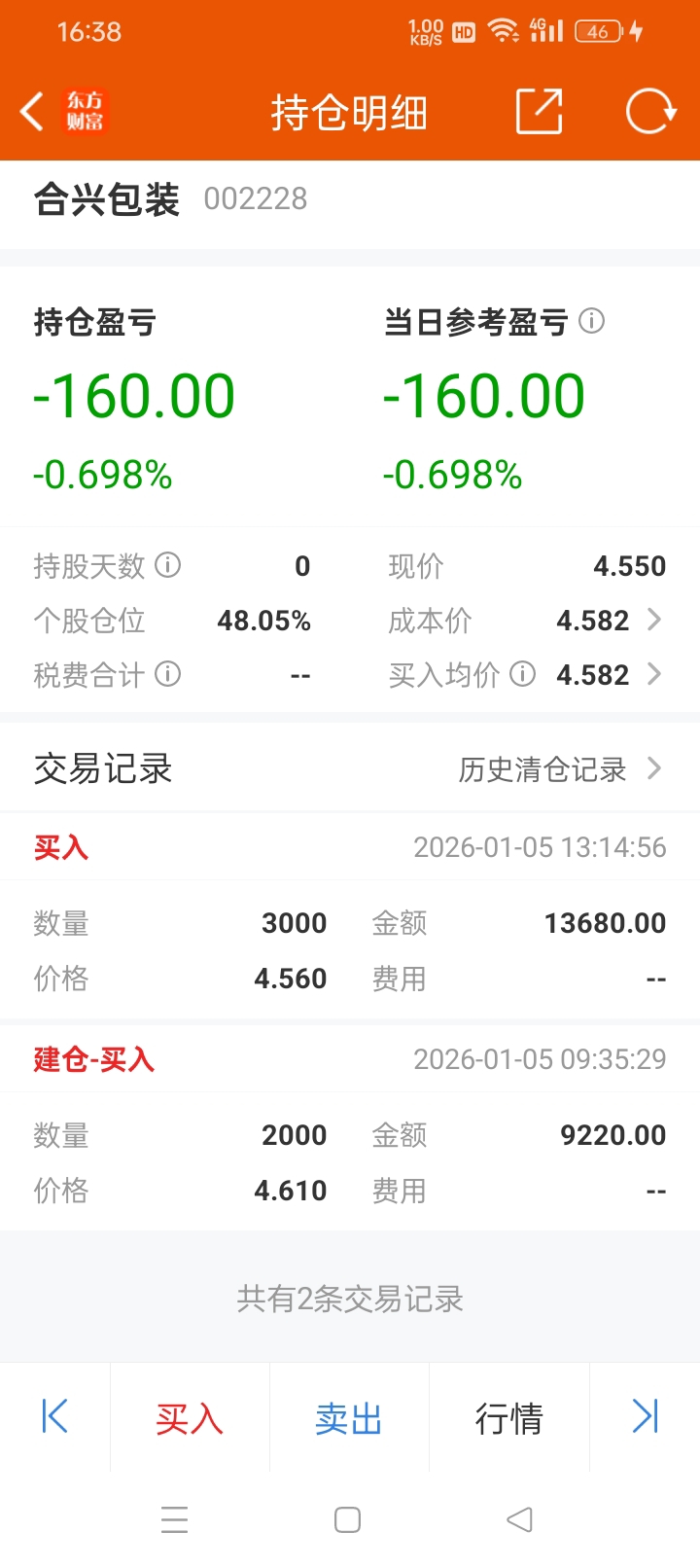 成本4.5元5千股,看5分钟K线图,尾盘10分钟,大量买单涌入,成交量呈红色且在