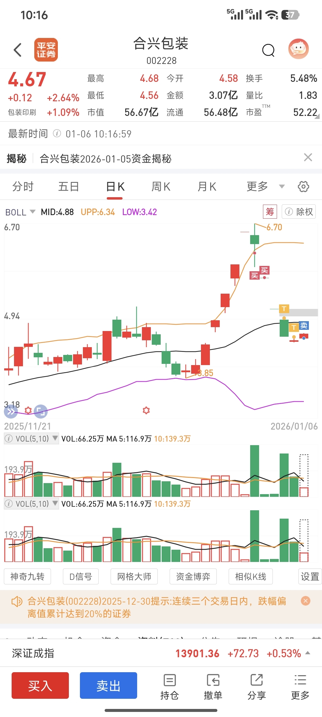 $合兴包装(SZ002228)$ 亏30点走了,你可以涨了