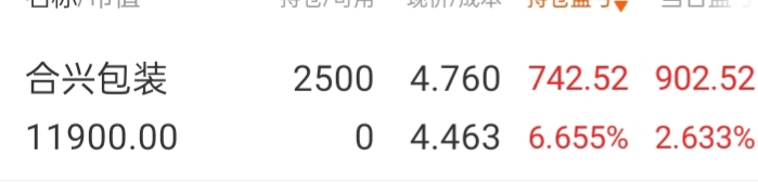 $合兴包装(SZ002228)$ 今天做了个T,成本由上周的4.62元降到4.46元。家人们明天能卖到3.96元(5日均价),欢迎评论。
