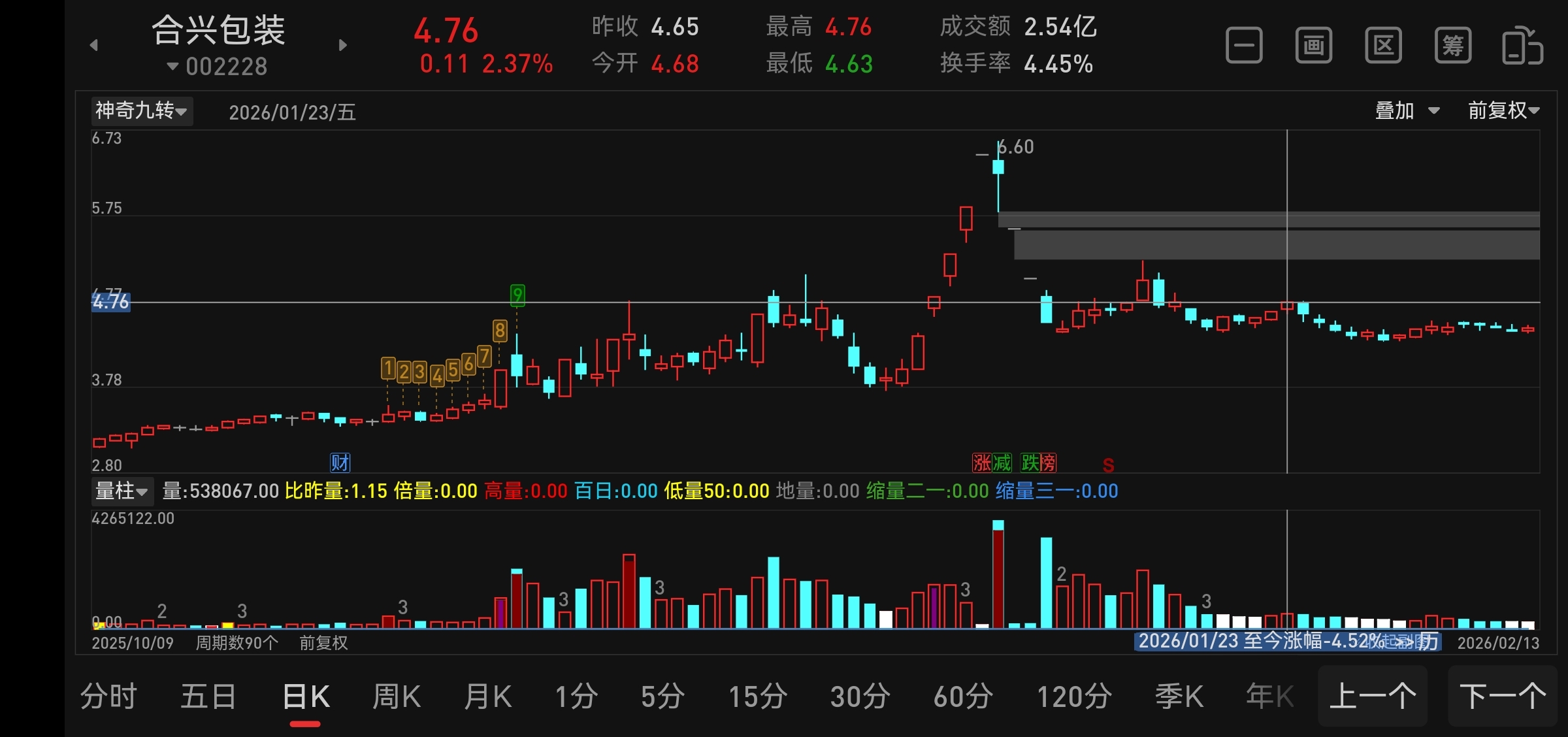 日K买入信号3.32,卖出信号4.76及回测4.76。