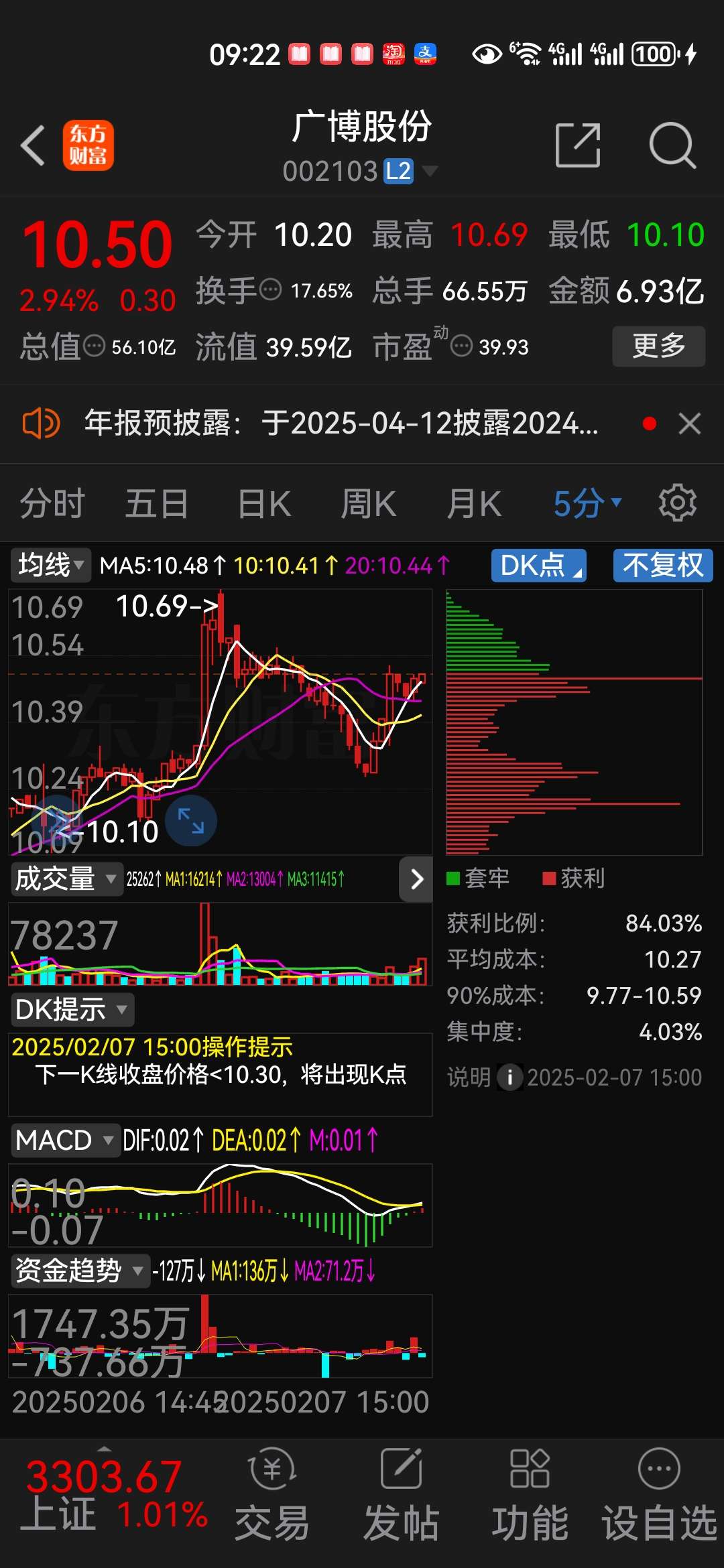 10.69卖出,10.25买入,T十0,当天获利复利。