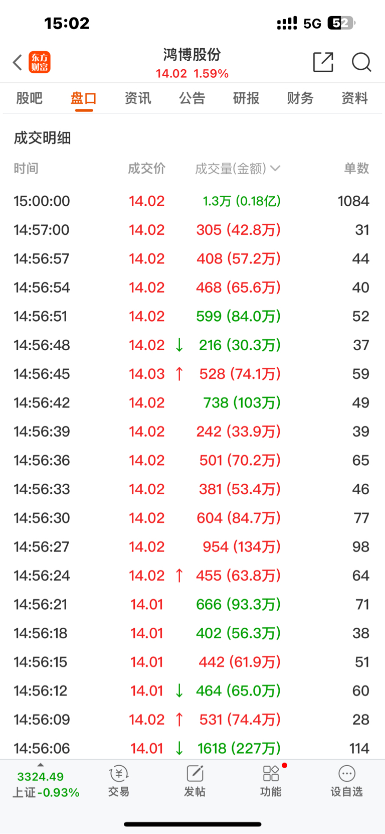 $鸿博股份(SZ002229)$ 盘尾这1.3万什么意思