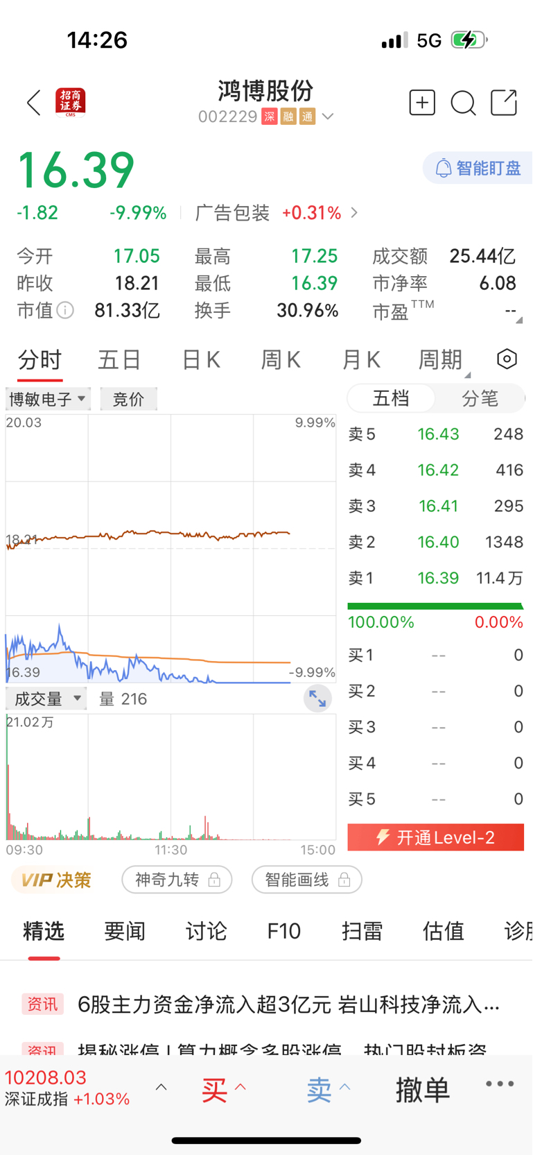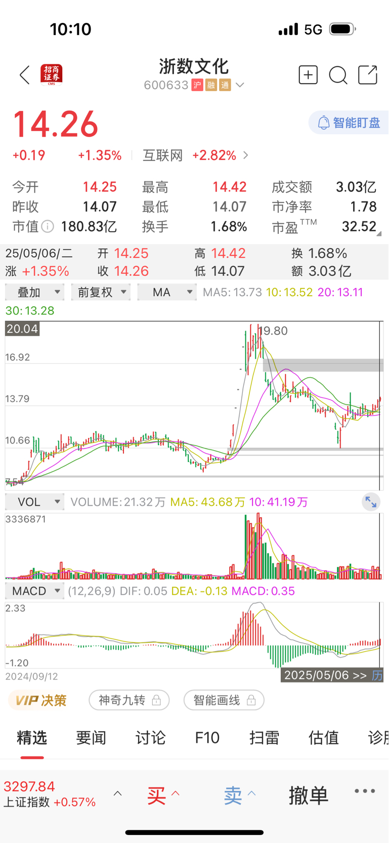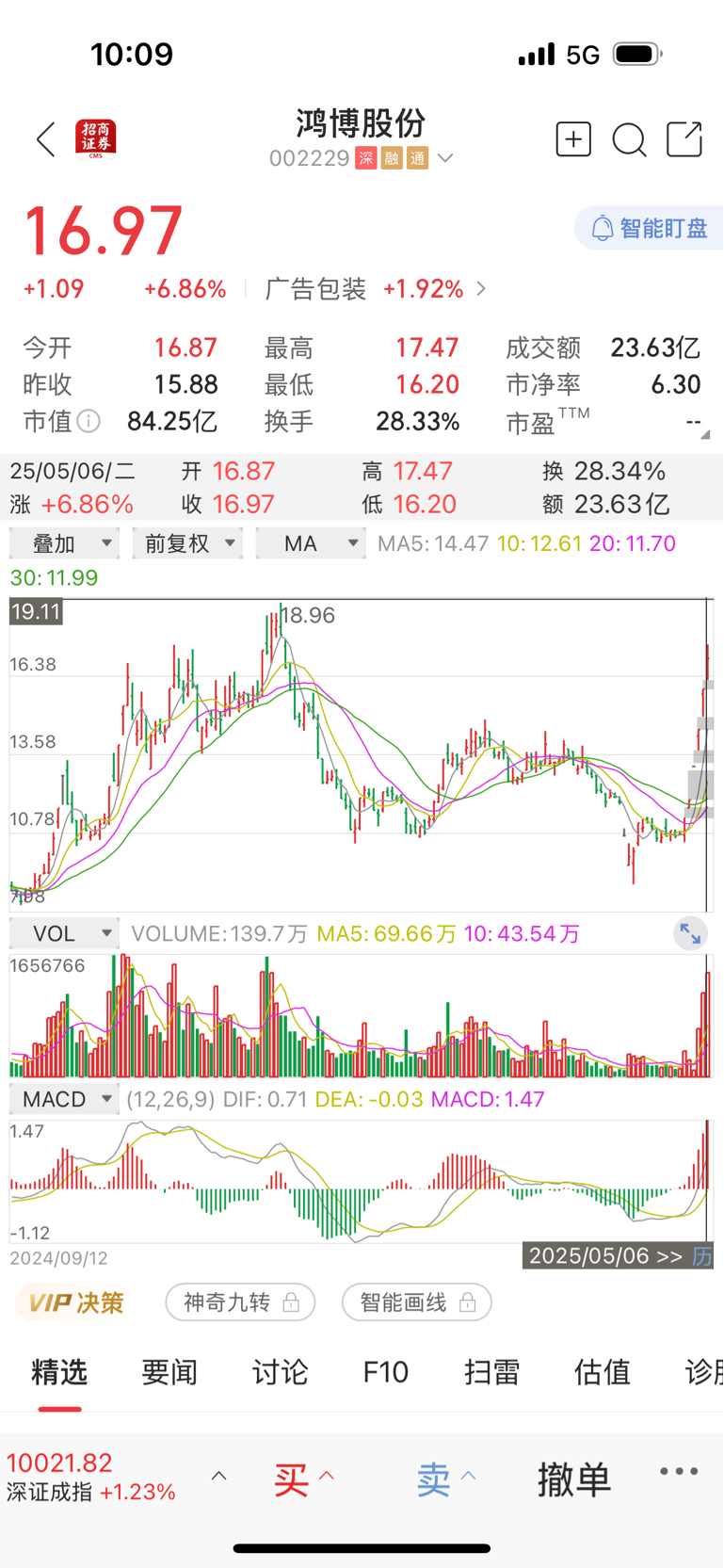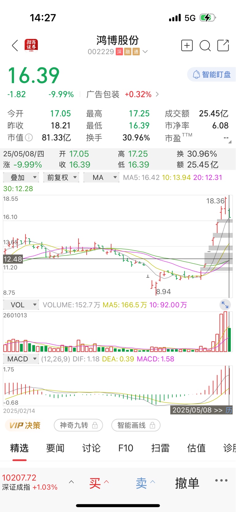 前天星期三上午我发的这篇预测文章,喊大家星期二与星期3卖光鸿博股份,判定那两天是最疯狂高顶出货的日子,喊大家规避风险全部换成蓝色光标与浙数文化。如果看见这篇文章并且换股的就规避了风险。就避免了后面的连续跌停。这个股票必须等跌到12:68元才能买进。暂时就只有看好蓝色光标与浙数文化、鼎捷数智,预测未来3天内这三只股票肯定大涨,赌未来三周内翻倍大涨,持股的一定都发财。