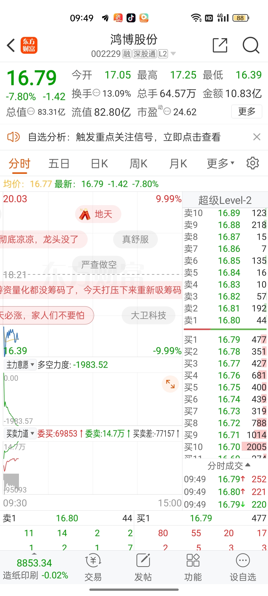 $鸿博股份(SZ002229)$ 今天必涨,家人们不要怕,我说的