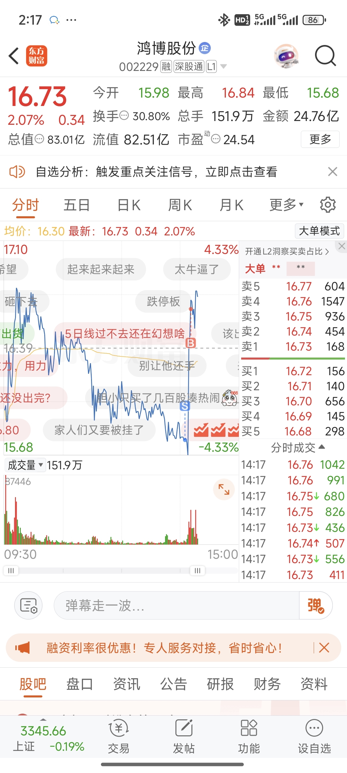 $鸿博股份(SZ002229)$ 成功把成本做高5毛。
