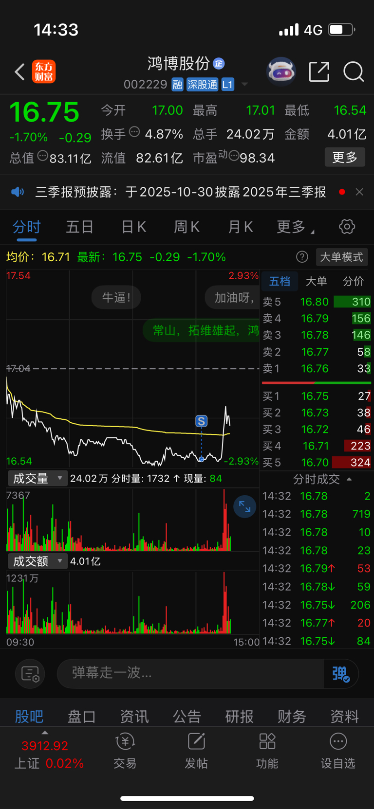 温馨提示: 1.根据《证券法》规定,禁止编造、传播虚假信息或者误导性信息,扰乱证券市场;2.用户在本社区发表的所有资料、言论等仅代表个人观点,与本网站立场无关,不对您构成任何投资建议。用户应基于自己的独立判断,自行决定证券投资并承担相应风险。《东方财富社区管理规定》