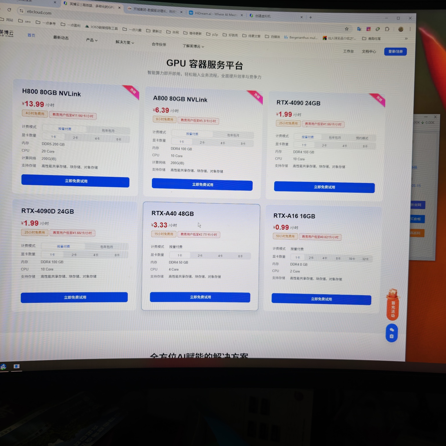 gpu增加了几个选项。都是英伟达的卡,都是英伟达的卡不代表没有华为的卡。因为阿里,火山,腾讯现在对外出租的卡也都是英伟达的,市场就是比较认可这卡。