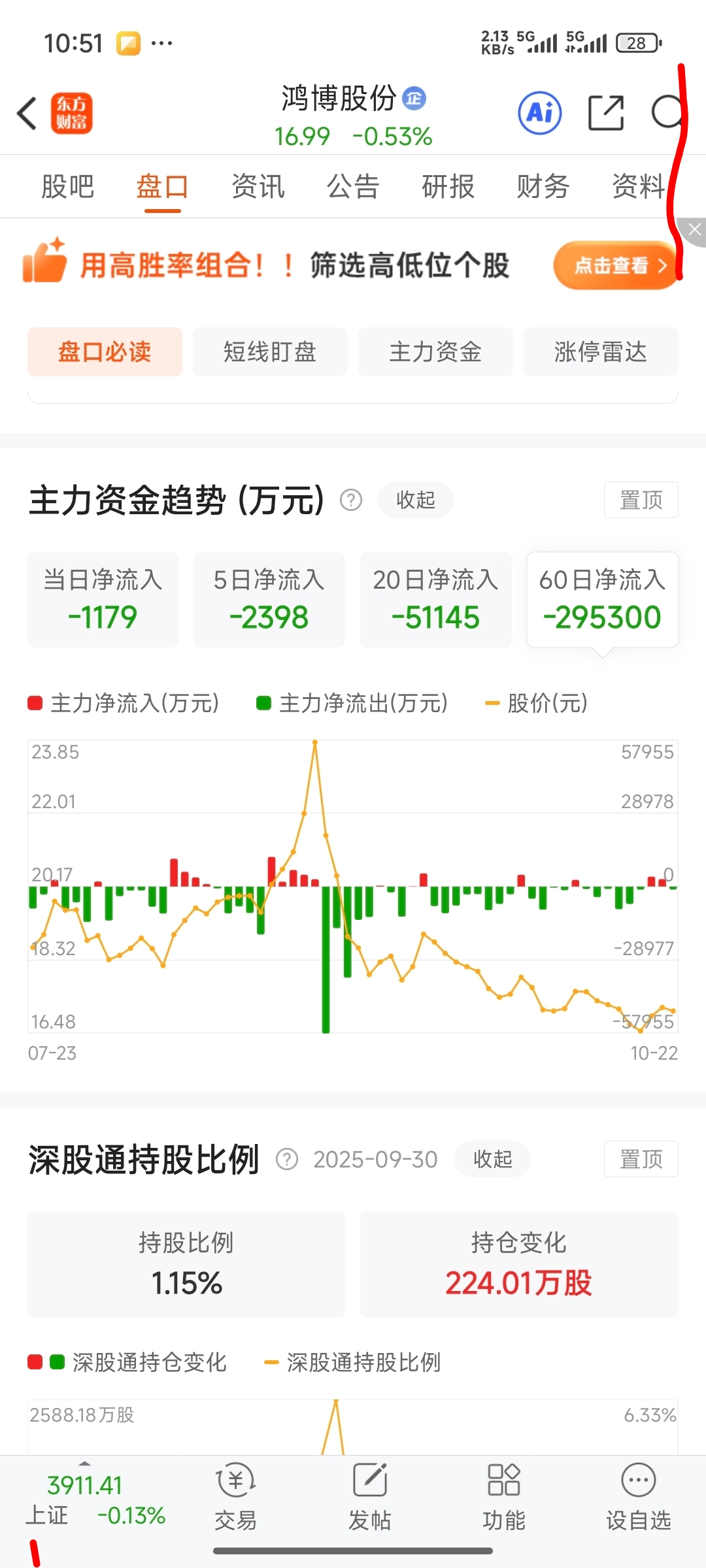 $鸿博股份(SZ002229)$ 恭喜博拉机,摆脱60日净流出低于30亿,是时间的扭曲还是道德的伦桑