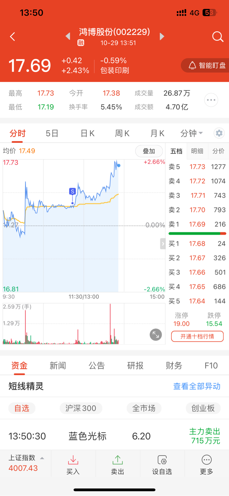 $鸿博股份(SZ002229)$ 卖早了,大腿都拍肿了。