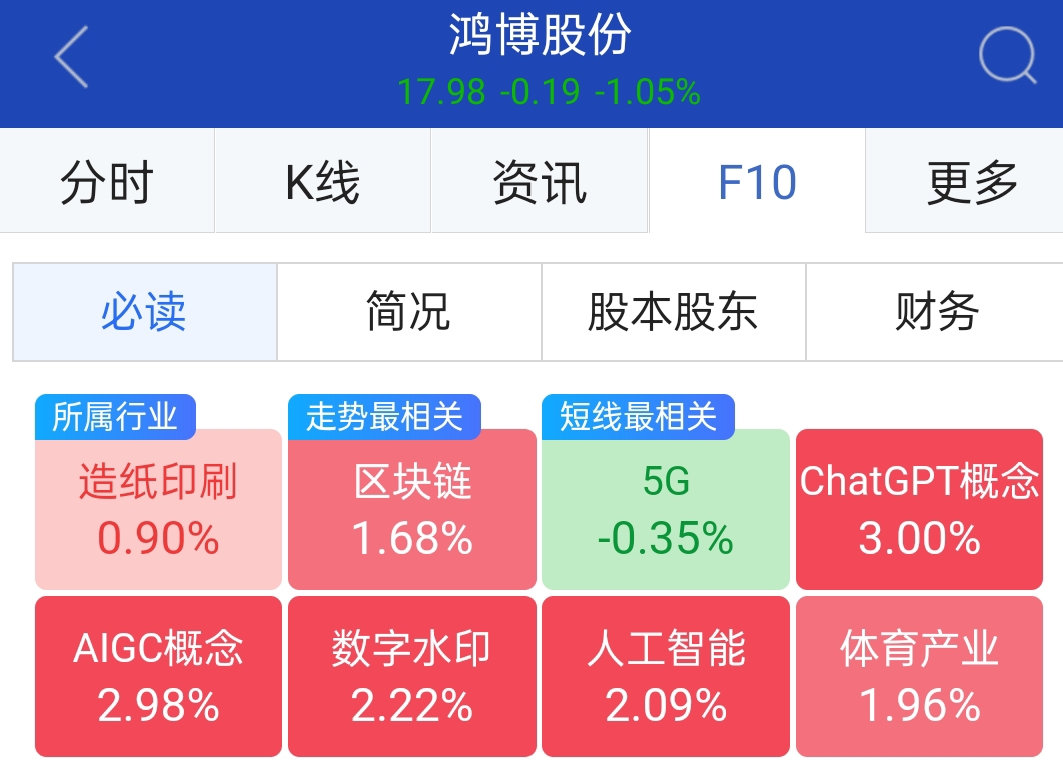 $鸿博股份(SZ002229)$ 今天所在板块大涨,鸿博跌啥意思