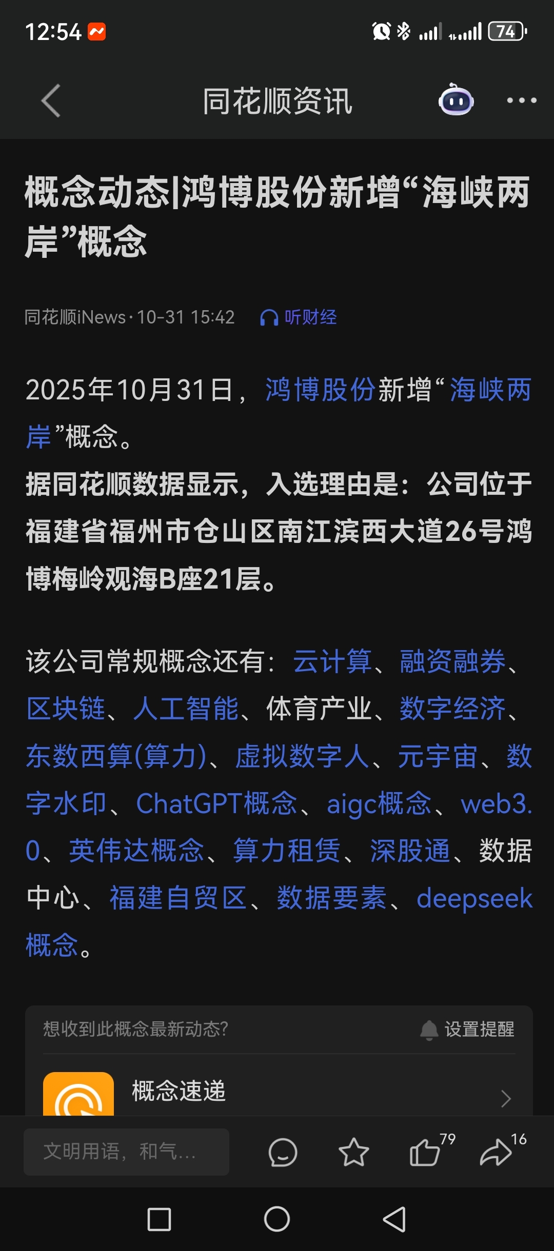$鸿博股份(SZ002229)$ 新增海峡两岸概念