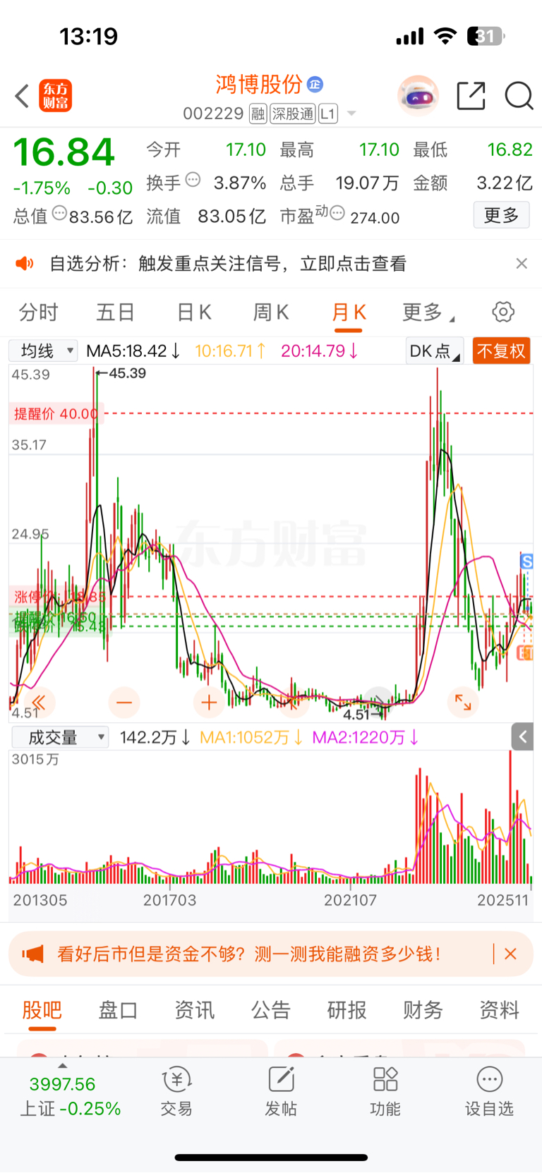 $鸿博股份(SZ002229)$ 这个走势为何和之前如此相像……