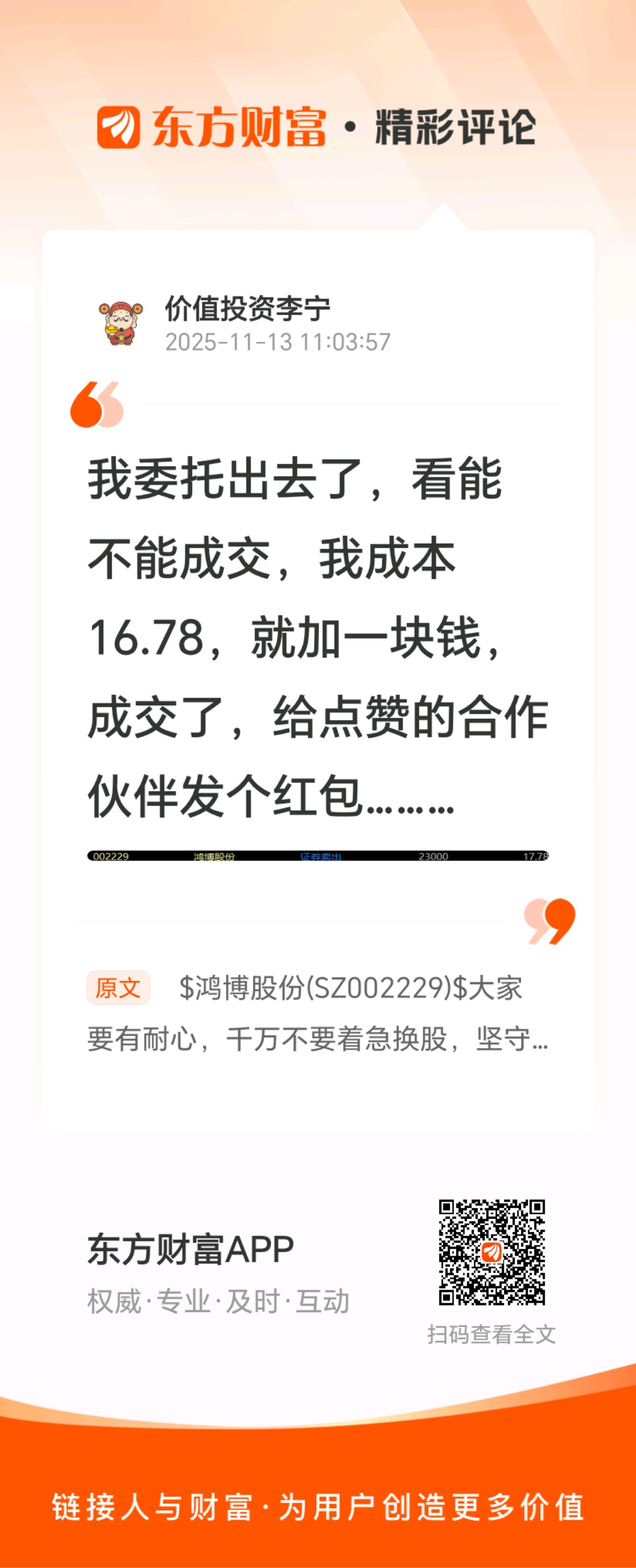 $鸿博股份(SZ002229)$ 大家要有耐心,千万不要着急换股,坚守让你意想不到的收获,我看到了鸿博这个月上20,不就两个涨停嘛,轻轻松松……