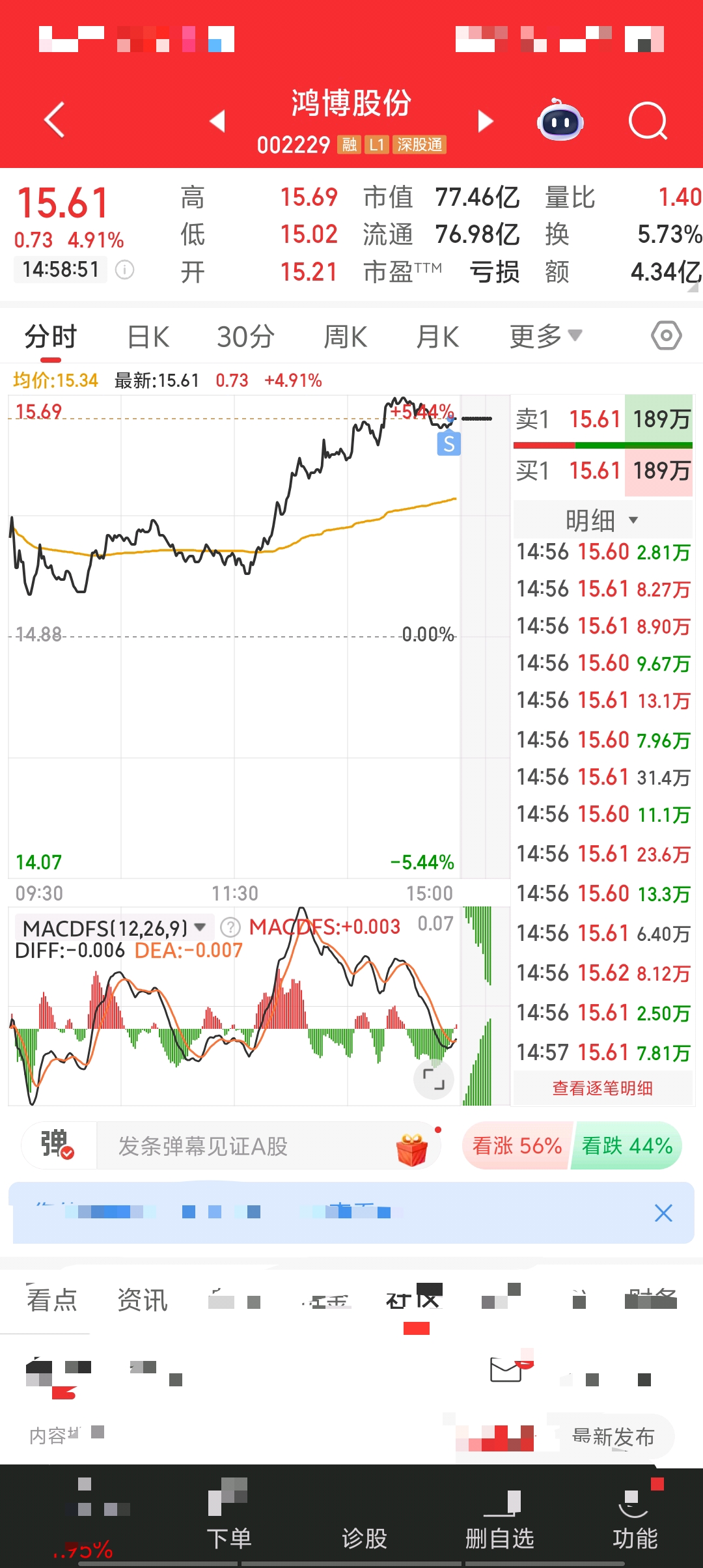 $鸿博股份(SZ002229)$ 被打怕了。尾盘还是卖了一部分仓位