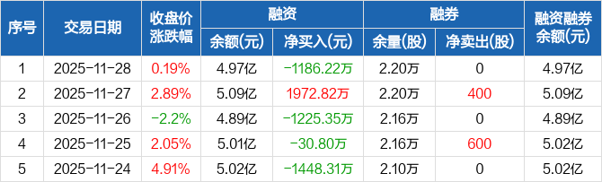 鸿博股份:融资净偿还1186.22万元,融资余额4.97亿元(11-28)