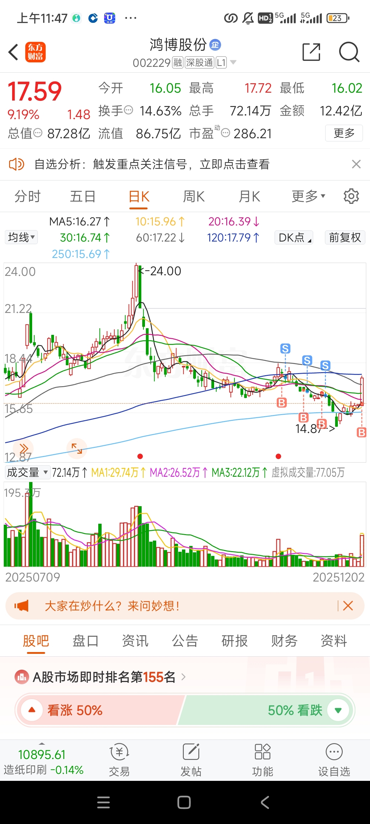 $鸿博股份(SZ002229)$ 三进三出,再杀一个回马枪,终于吃肉了