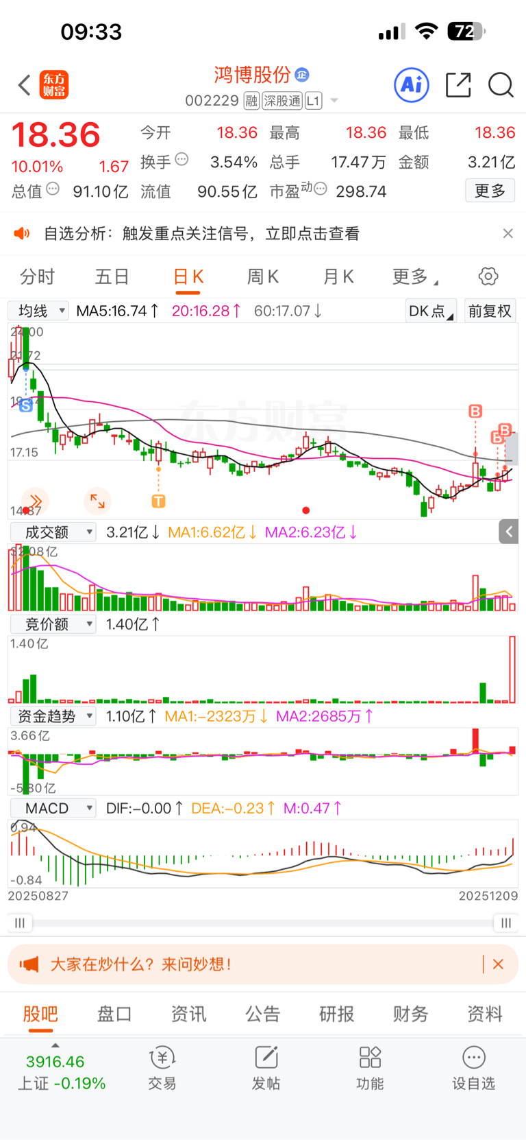 $鸿博股份(SZ002229)$ 主升浪开启,目前标价30.41