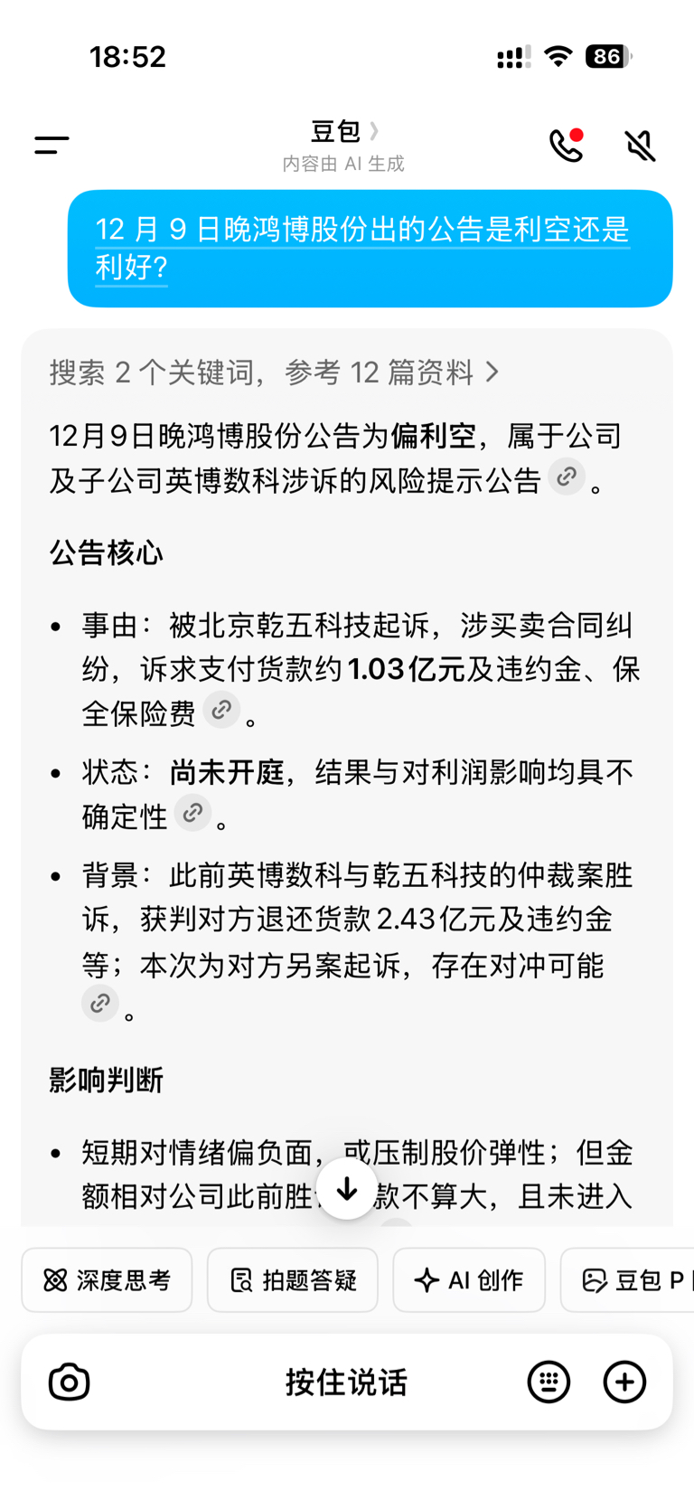 $鸿博股份(SZ002229)$ 豆包说是利空
