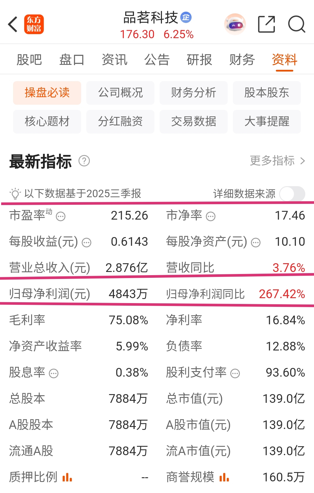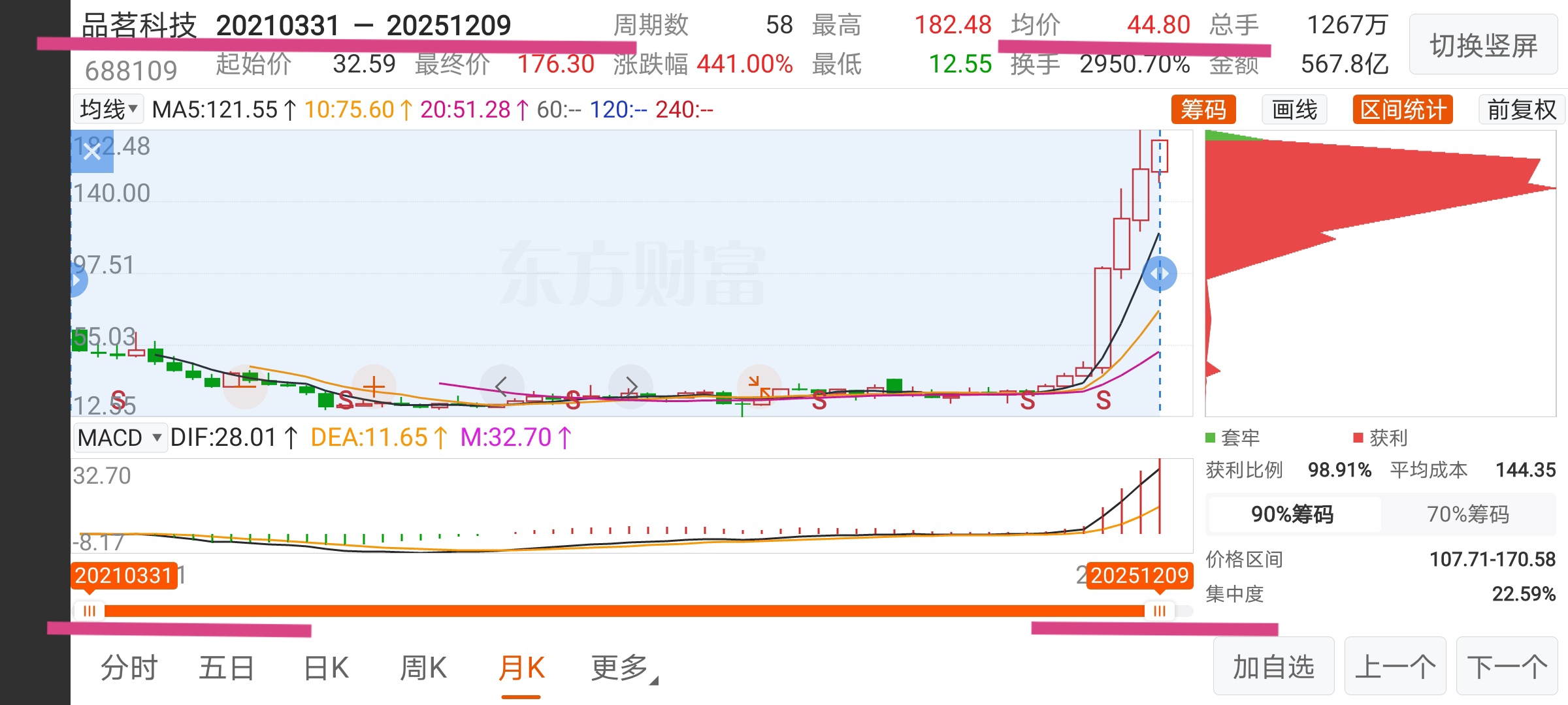 品茗科技(688109.SH)2021年3月上市至今约四年半多运行均价44.80元/股,现股价176.30元/股,为近四年半多运行均价的393.53%(总市值139.00亿元)。